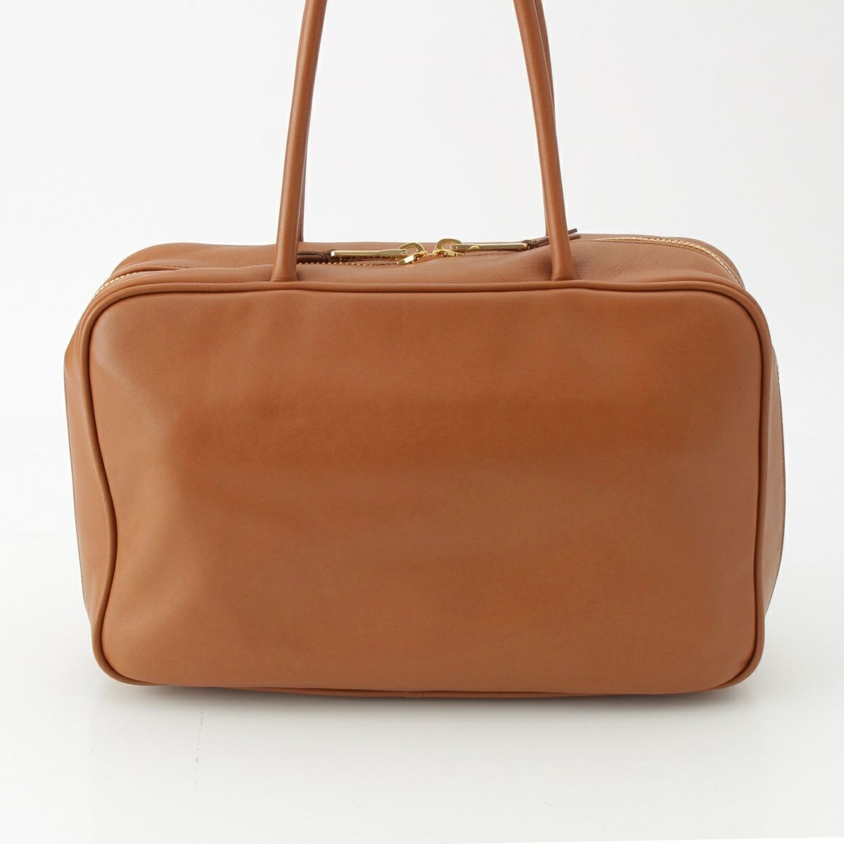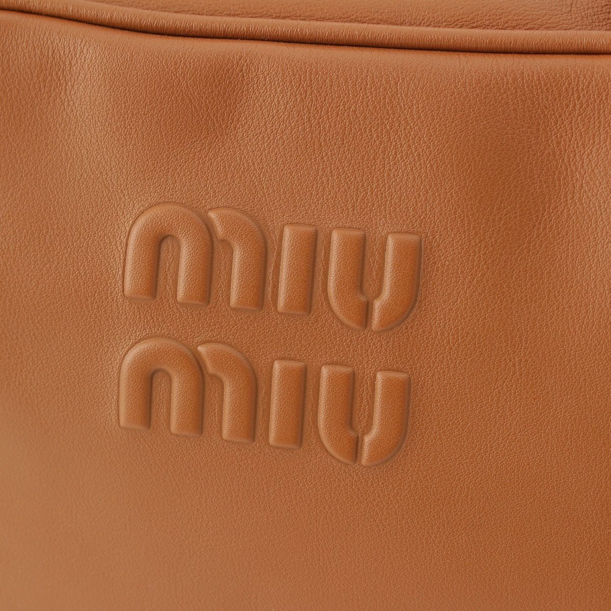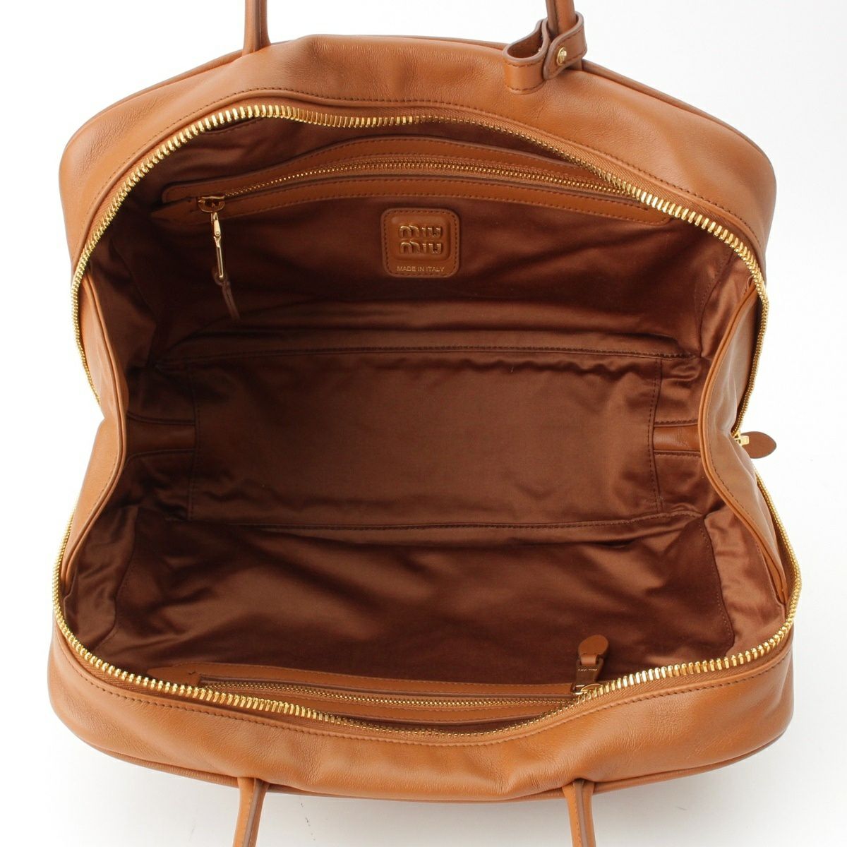 ミュウミュウ レザー ボー ラージサイズ ロゴ ハンドバッグ 5BB117 コニャック