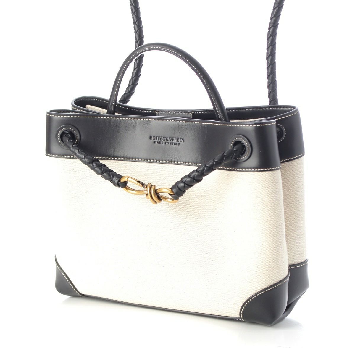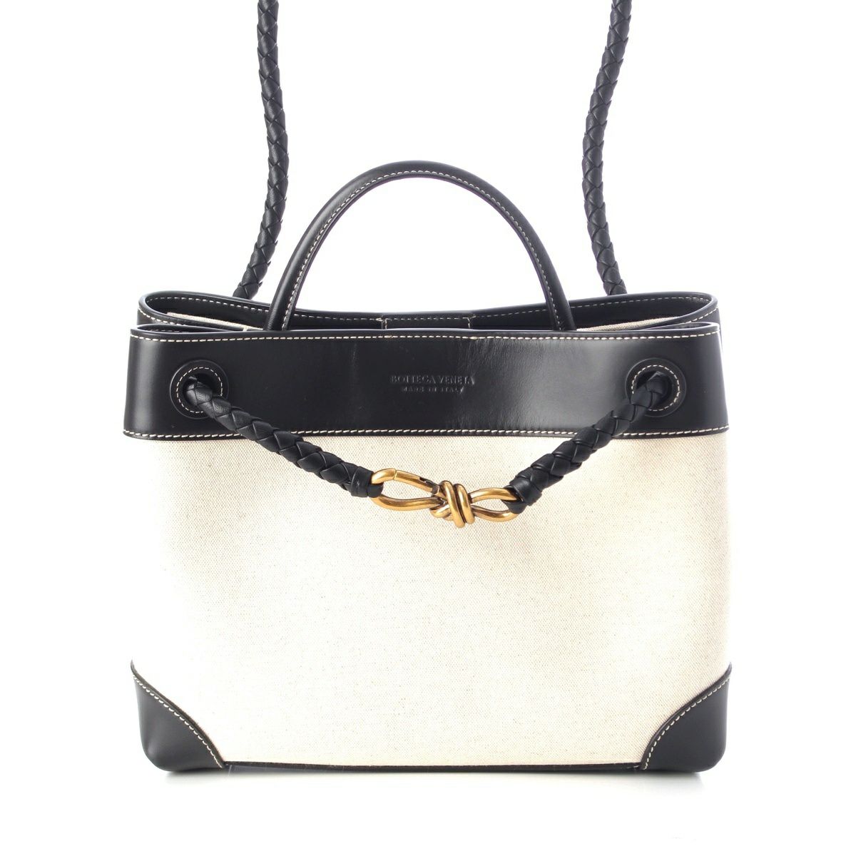 ボッテガヴェネタ レザー キャンバス アンディアーモ ミディアム 3WAY ハンドバッグ ブラック