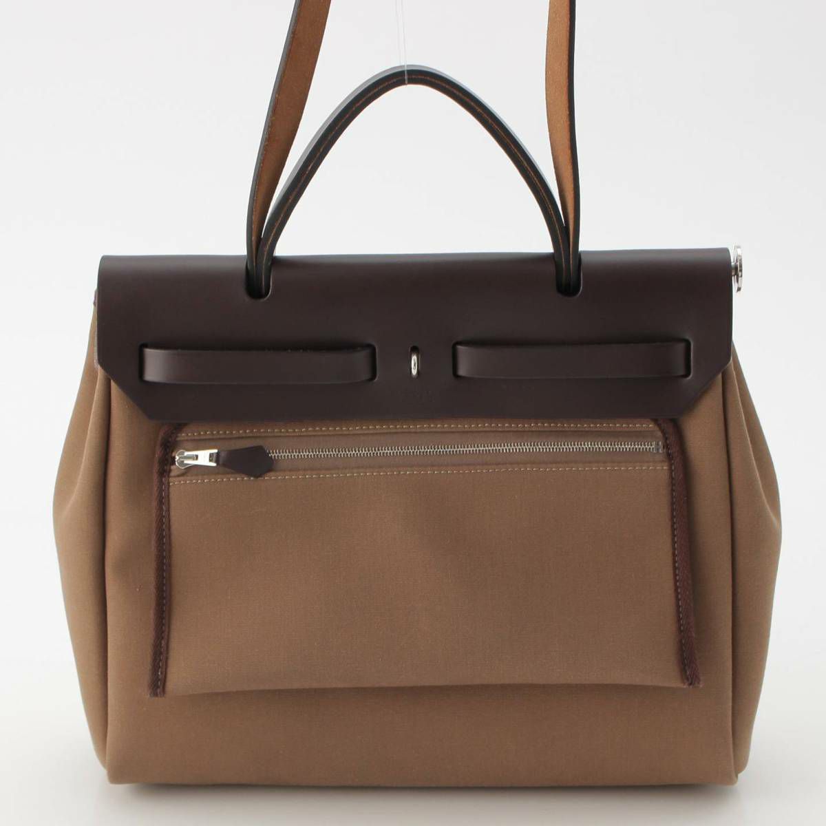 エルメス Y刻印 エールバッグジップ 31PM トワルオフィシエ ヴァッシュハンター 2WAY ハンドバッグ エトゥープ エベンヌ