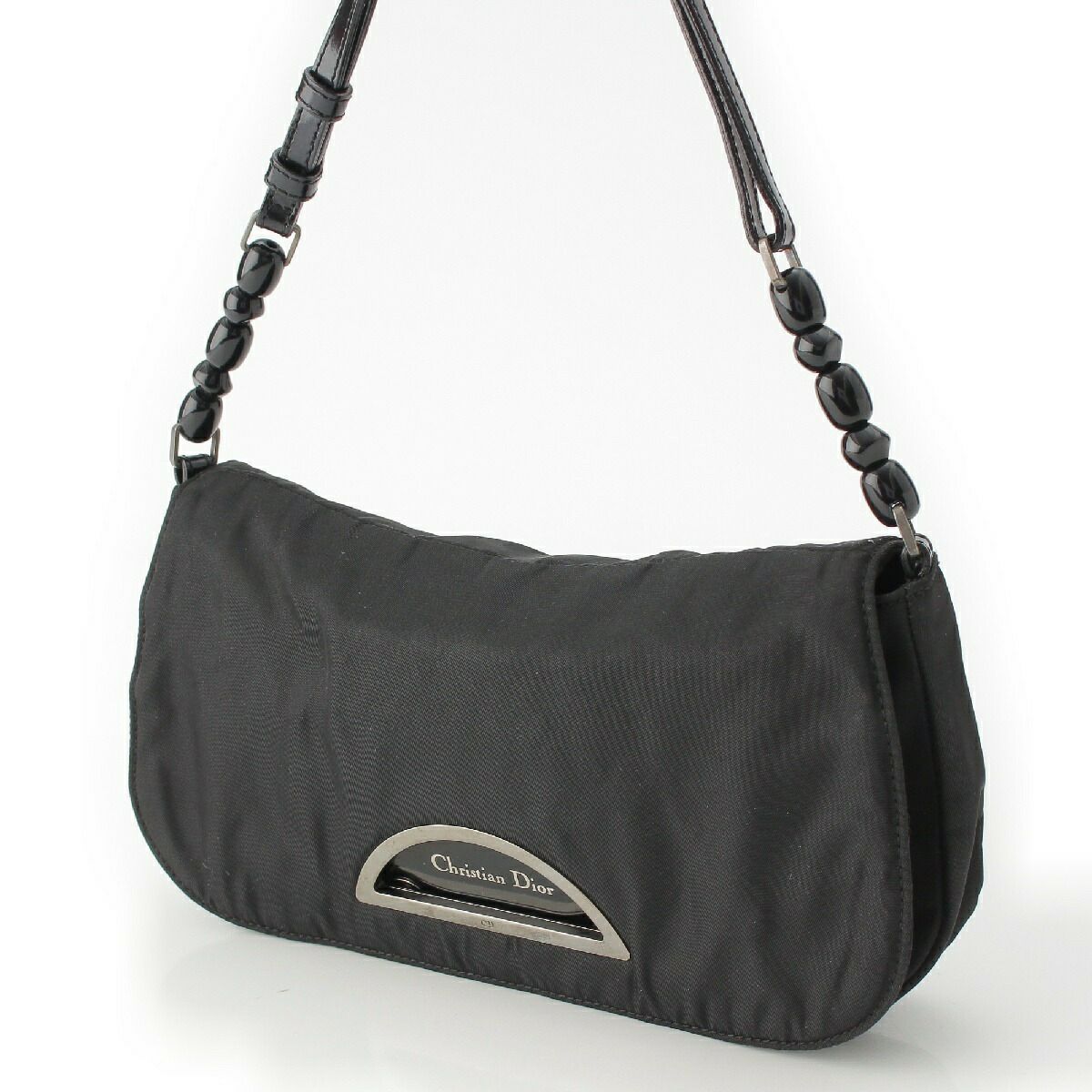 クリスチャンディオール マリスパール ムーンバッグ ハンドバッグ ナイロン レザー ブラック