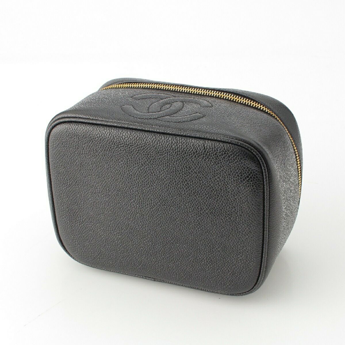 シャネル 3番台 バニティバッグ ココマーク キャビアスキン ハンドバッグ ブラック