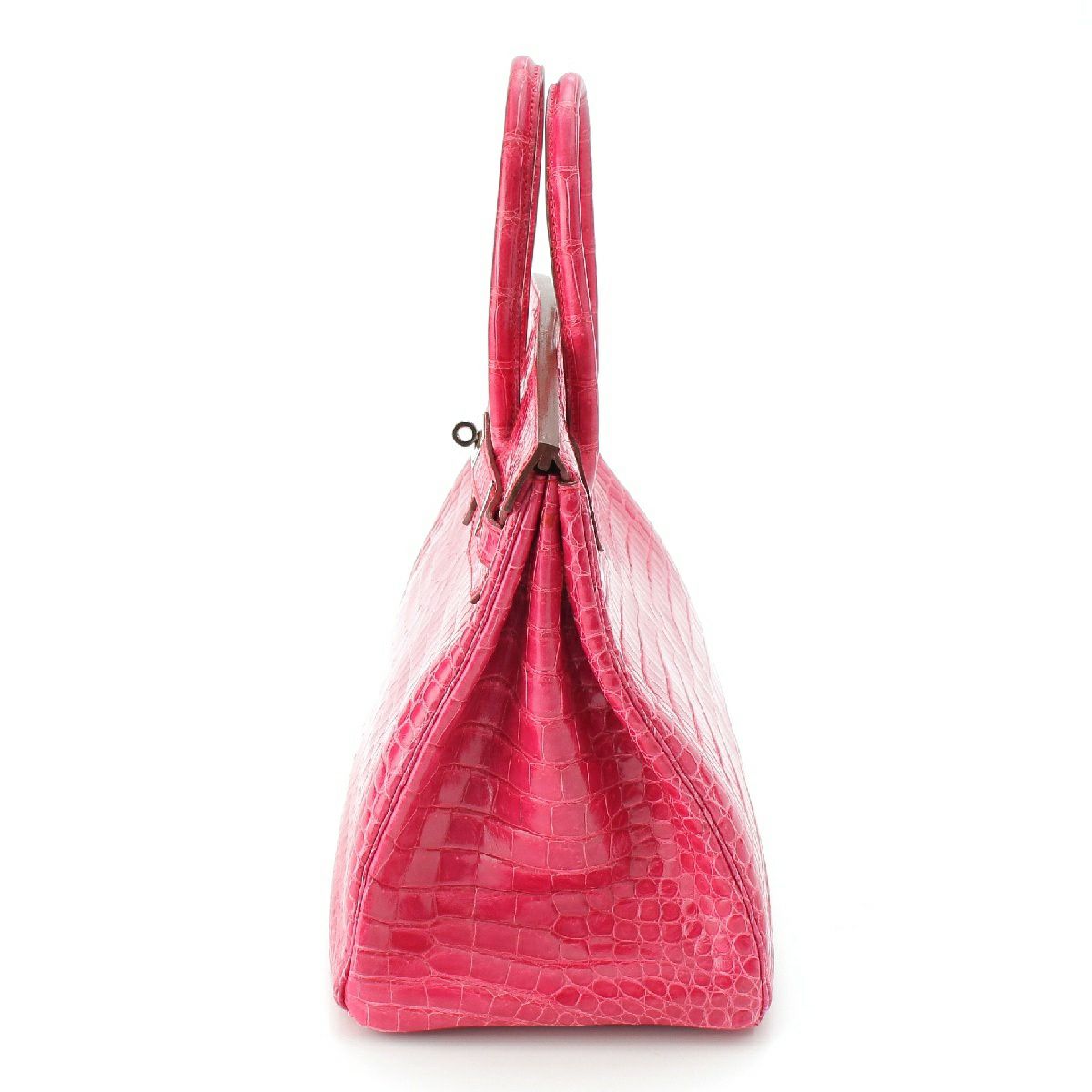 エルメス □H刻印 バーキン35 ポロサス クロコ ハンドバッグ シルバー金具 フューシャピンク
