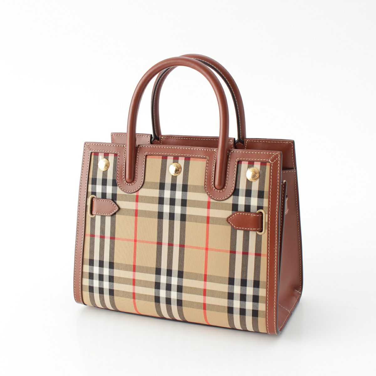 バーバリー タイトルミニ コットン レザー ヴィンテージノバチェック 2WAY ショルダー ハンドバッグ 8025267 ブラウン ベージュ