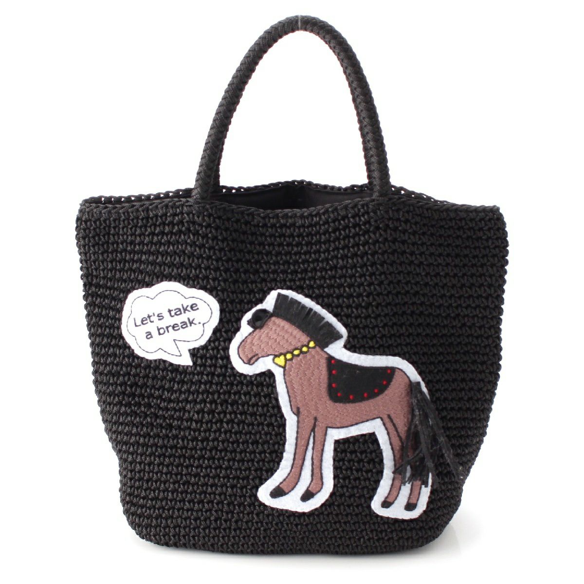 ラドロー フリンジ 馬 刺繍 コード ハンドバッグ 鞄 ブラック
