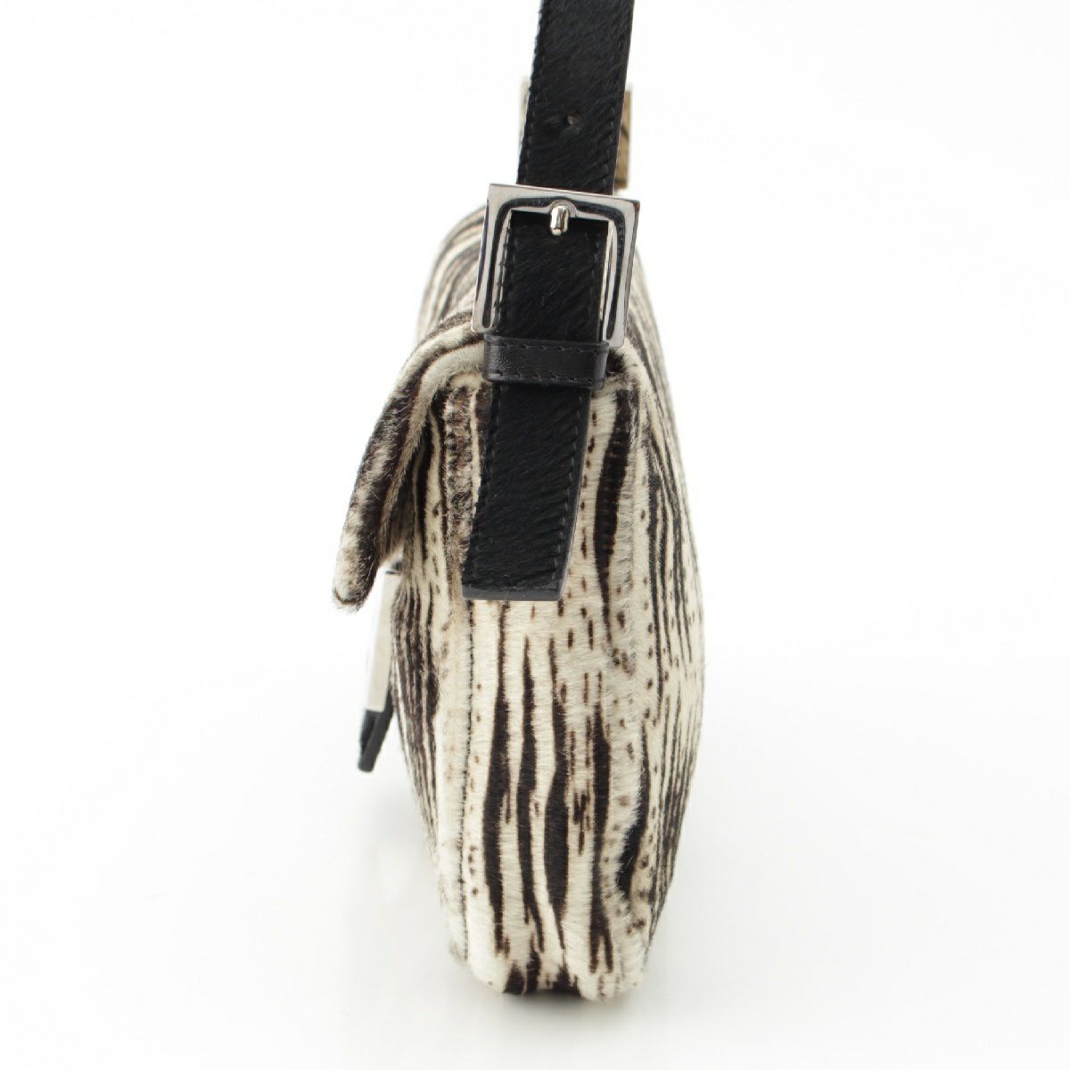 フェンディ マンマバケット レザー ハラコ ゼブラ 縞模様 ワンショルダー ハンドバッグ ブラウン