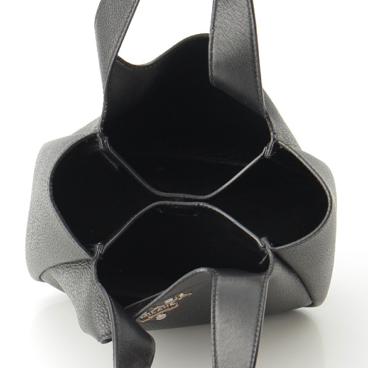 プラダ ヴィッテロダイノソフトレザー トライアングルロゴ ハンドバッグ トート 1BA349 ブラック シルバー金具