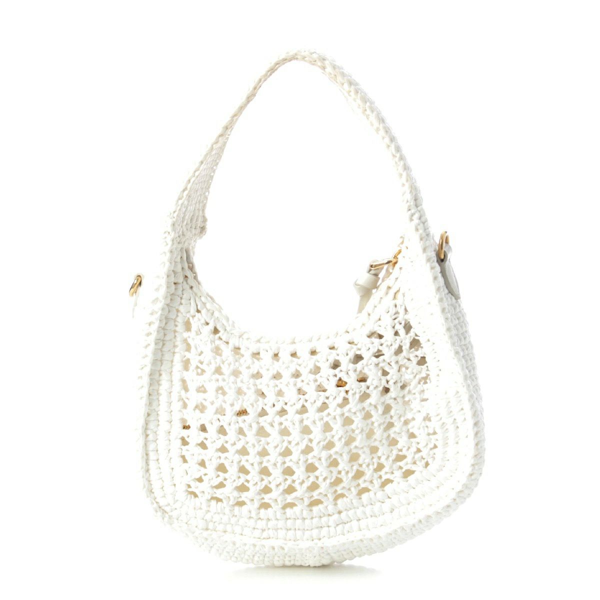 ミュウミュウ ワンダー スモール ウーブンファブリック クロシェ ロゴ ミニ ワンショルダー ハンドバッグ 5BC125 ホワイト