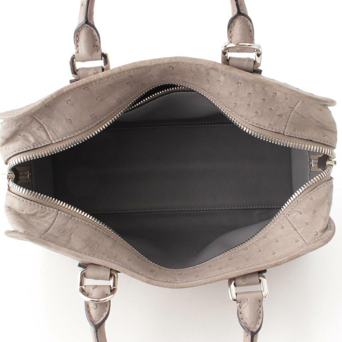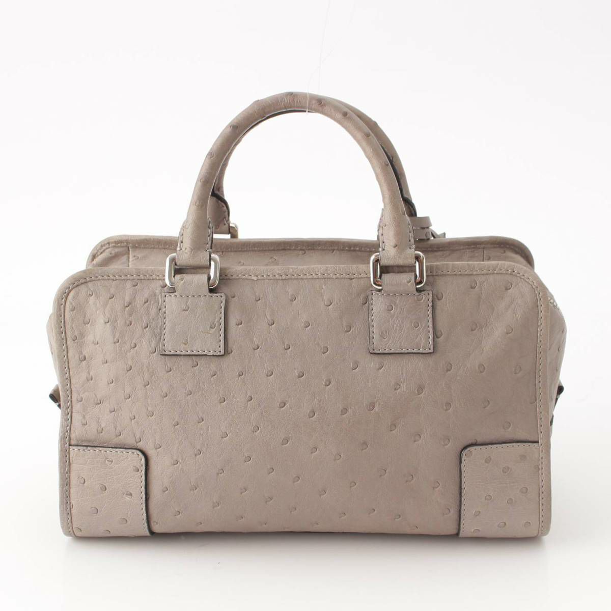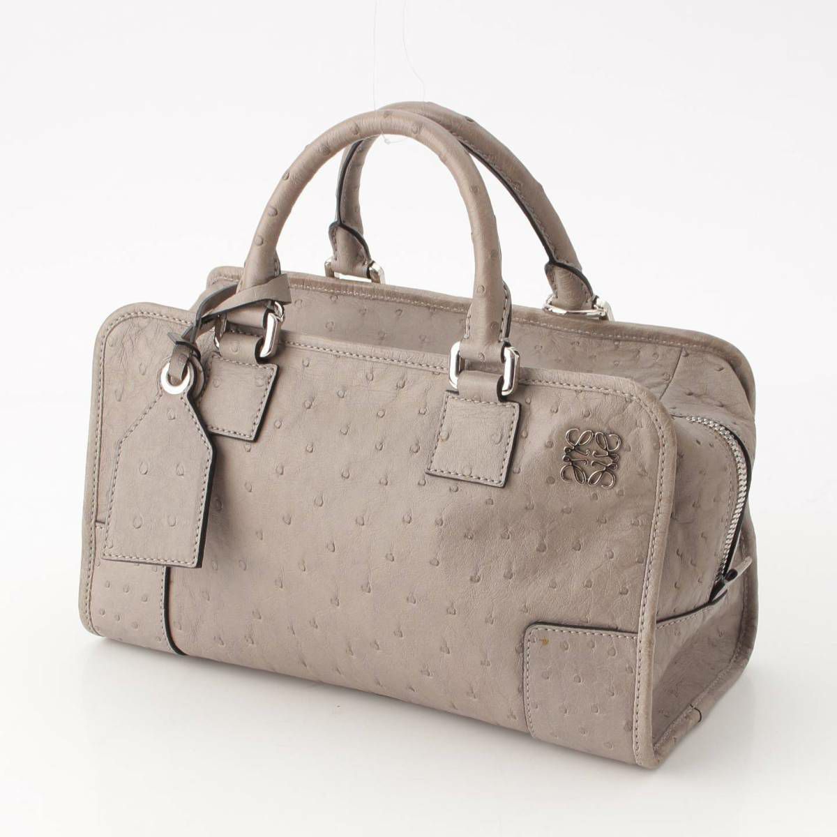 ロエベ Loewe アマソナ28 アナグラム オーストリッチ 2way ハンド ショルダーバッグ グレー