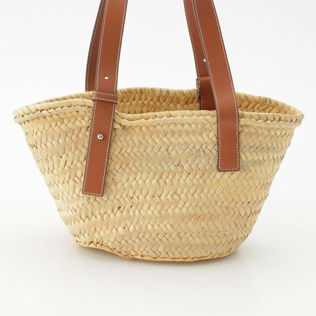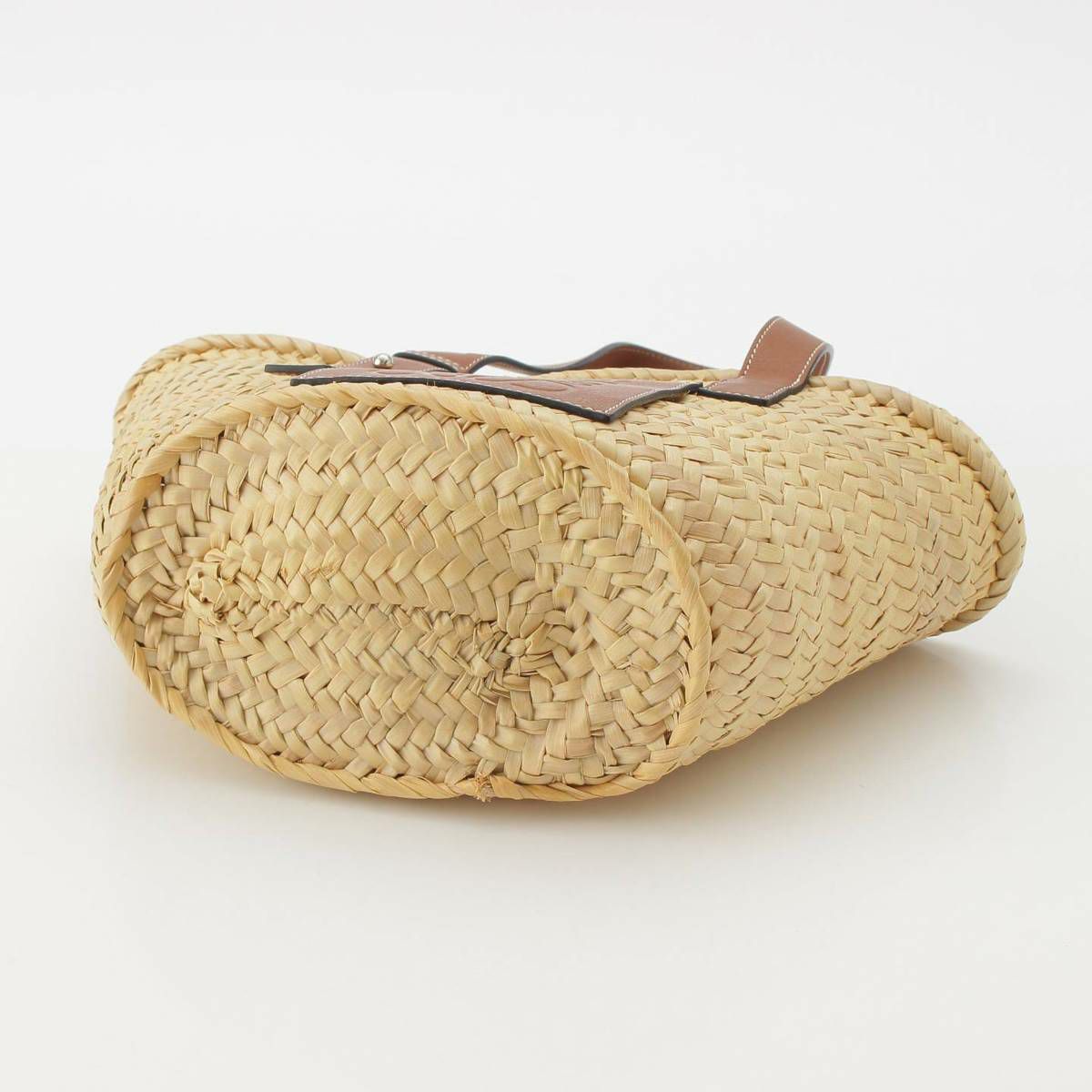 ロエベ Loewe アナグラム ラフィア レザー バスケットバッグ かごバッグ ハンドバッグ ベージュ