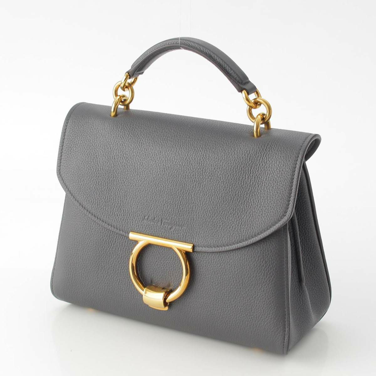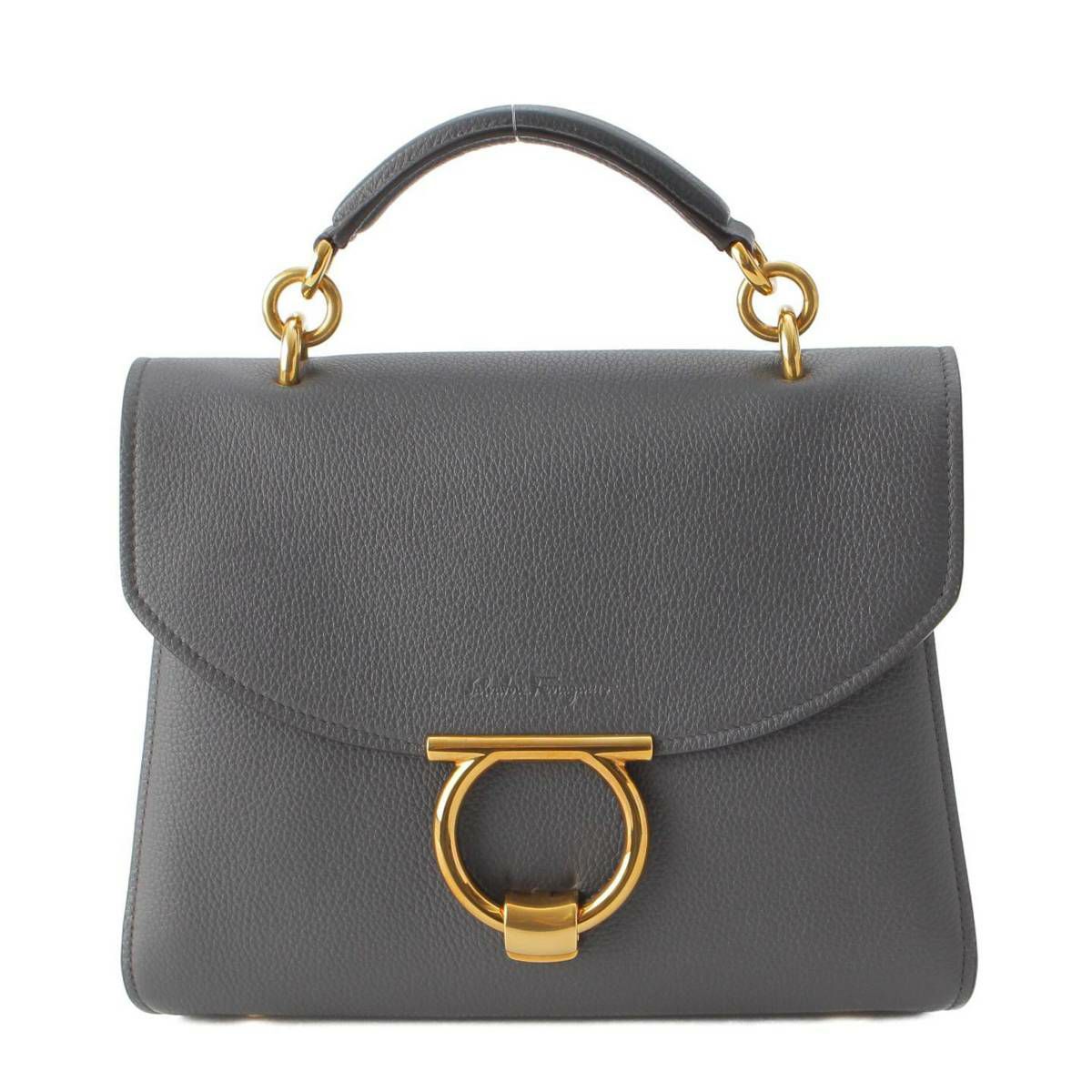 サルバトーレフェラガモ Salvatore Ferragamo ガンチーニ ゴールド金具 カーフ 2way ショルダー ハンドバッグ 鞄 21H320 グレー