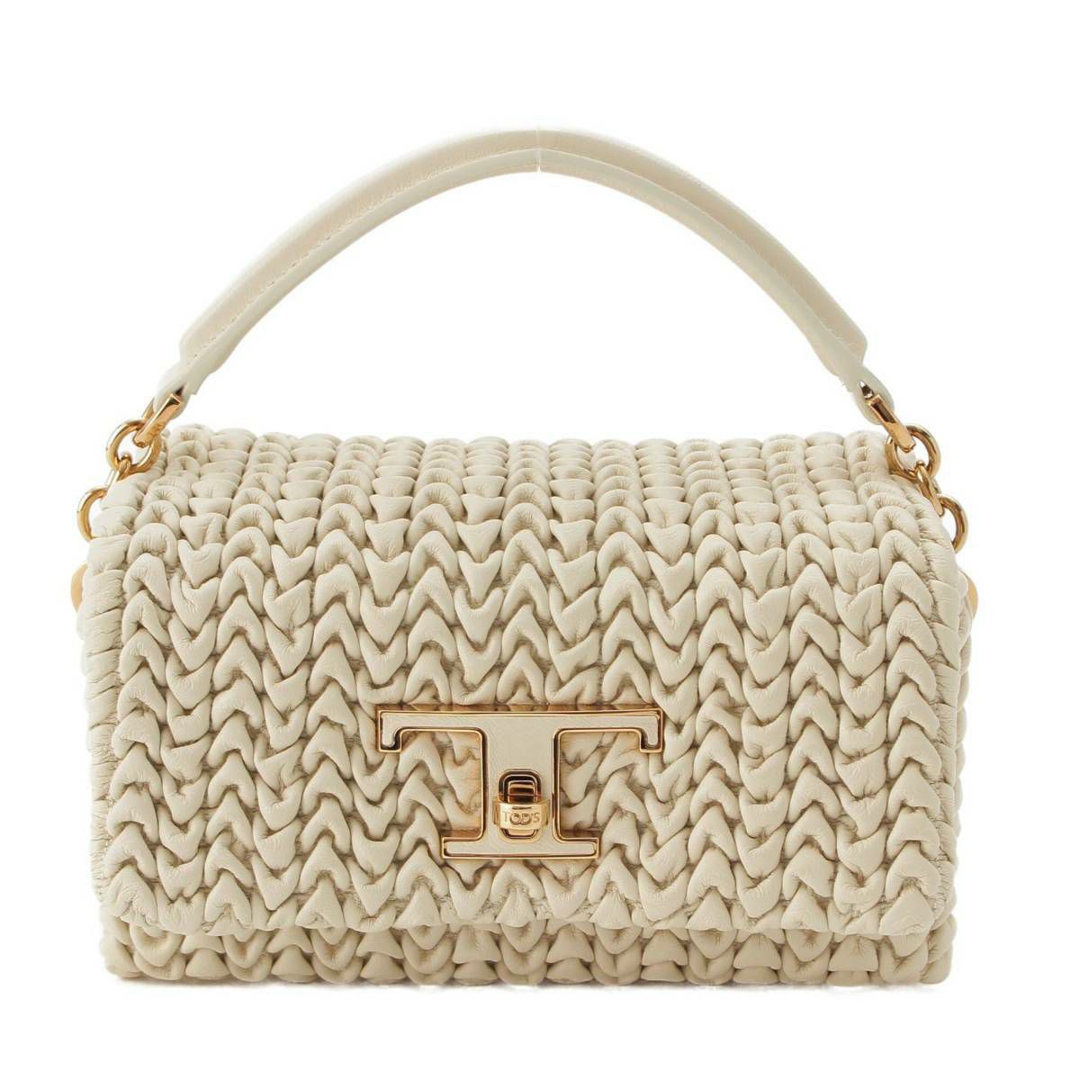 トッズ Tタイムレス レザー フラップ マイクロ 2way ハンドバッグ ショルダーバッグ クリーム