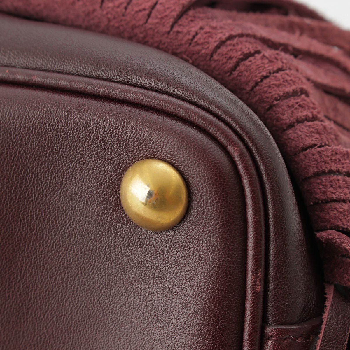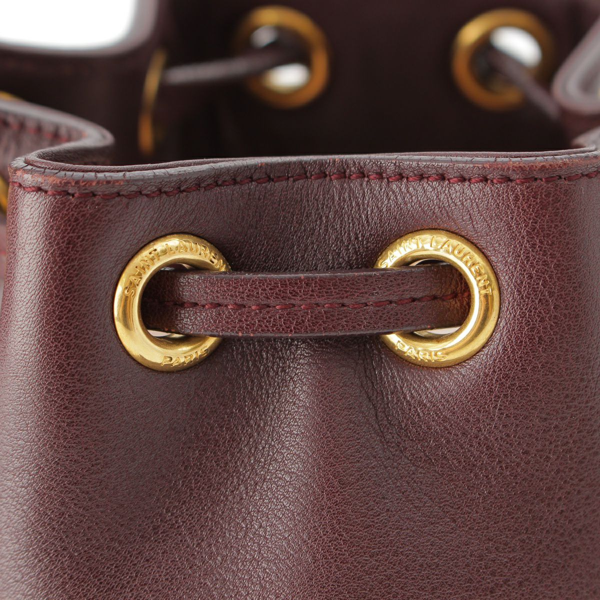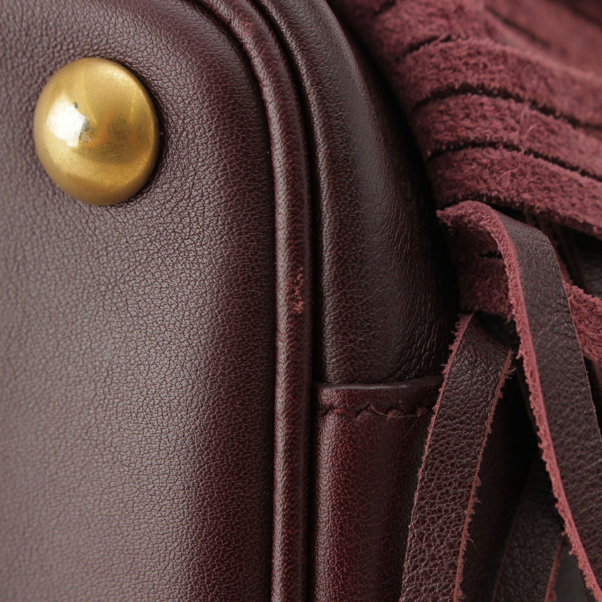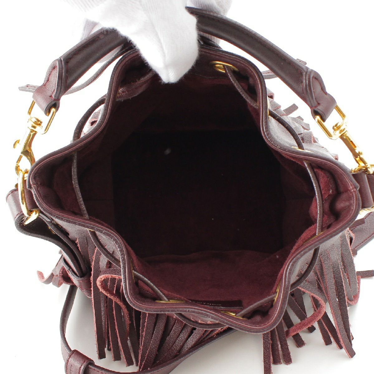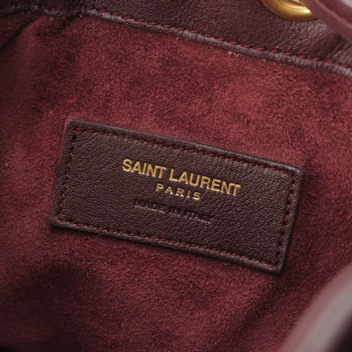 サンローラン エマニュエル レザー フリンジ ドローストリング トップハンドル 2WAY ショルダーバッグ バケット 357603 バーガンディ