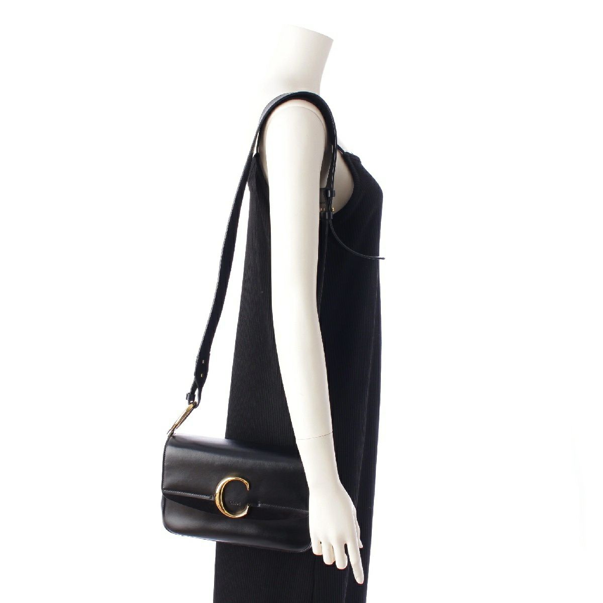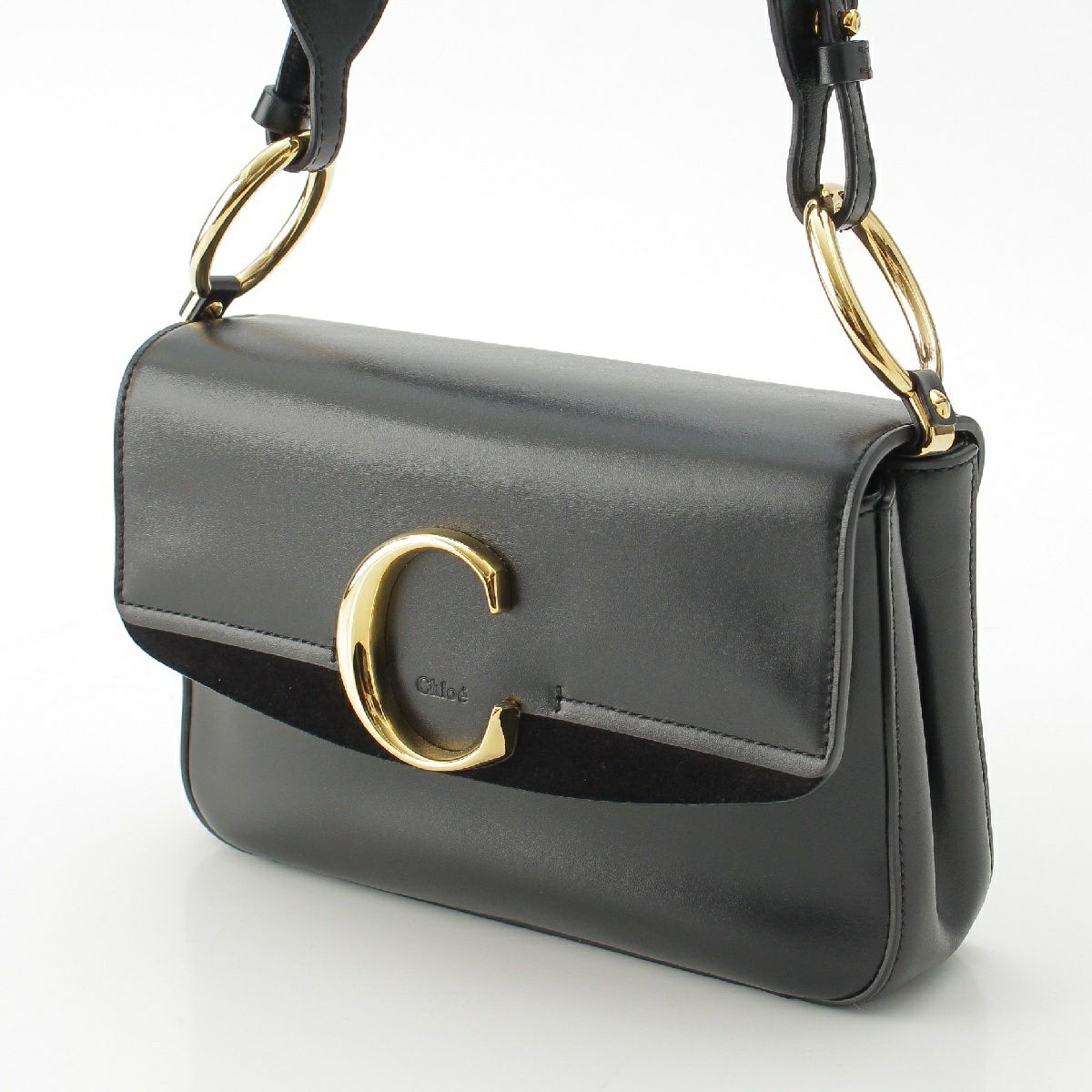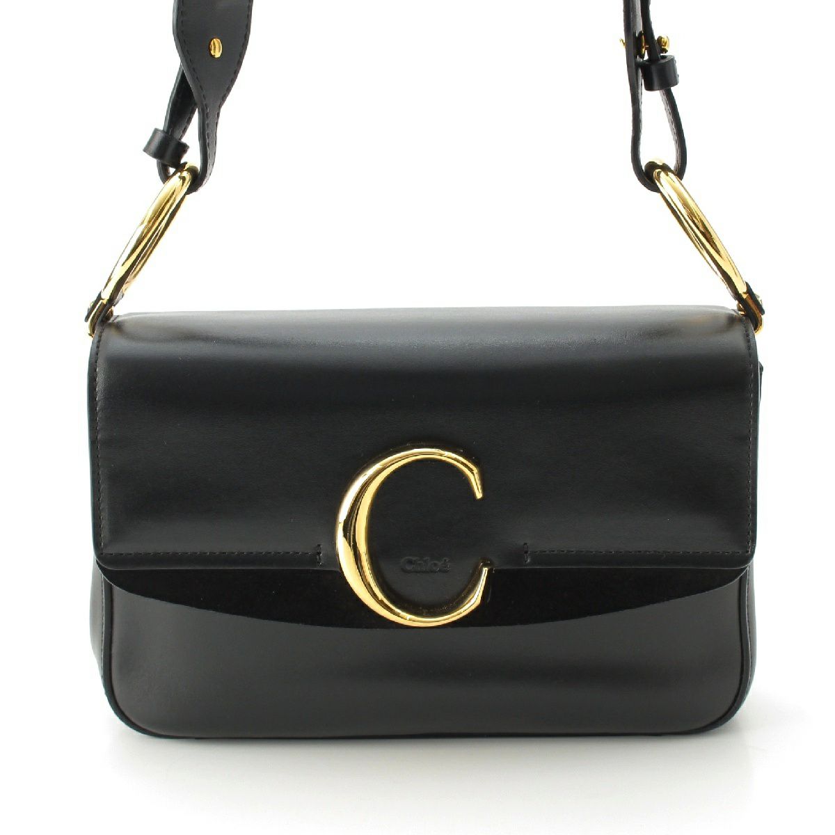 クロエ レザー Cロゴ スモール ダブルキャリー 2way ゴールド金具 ショルダーバッグ ブラック