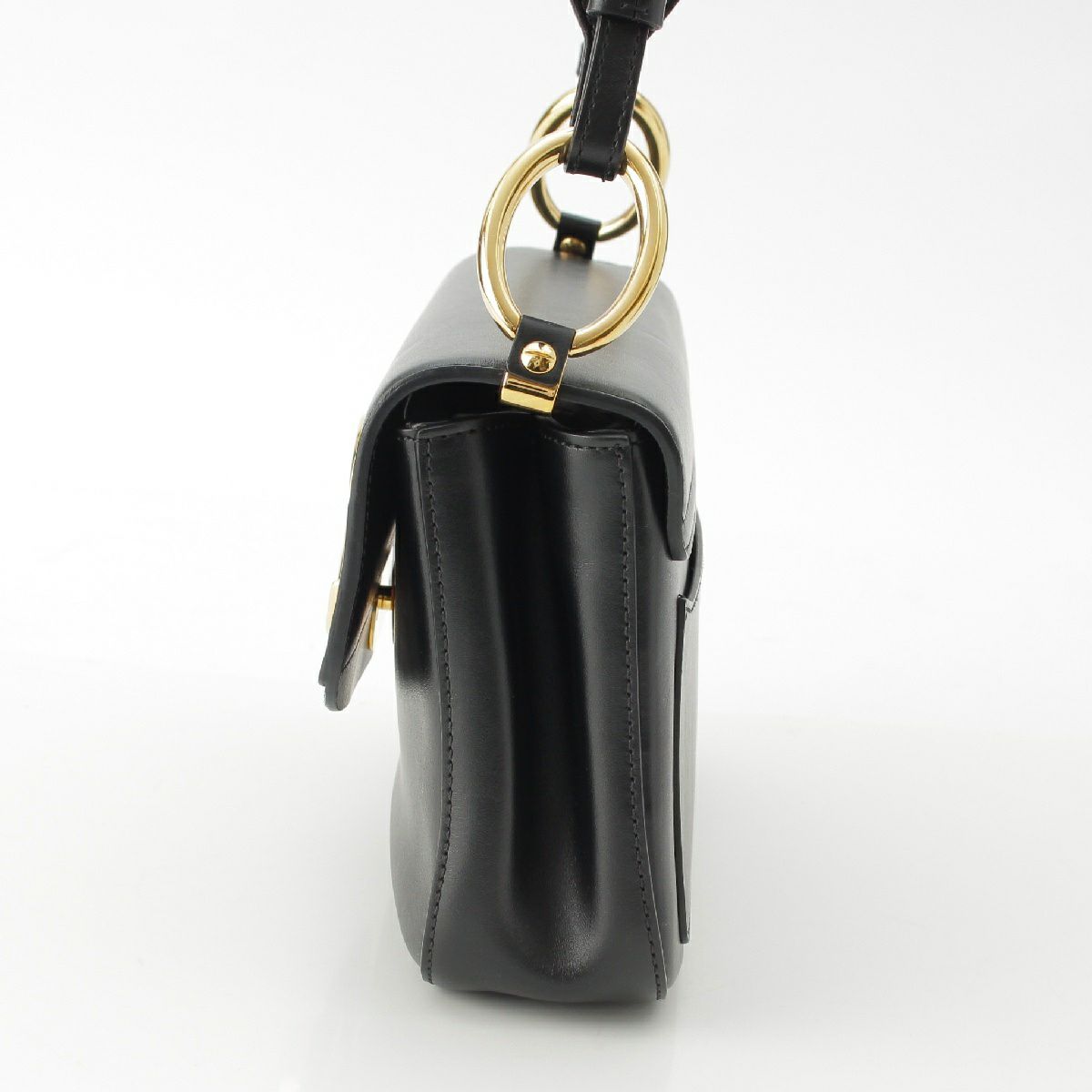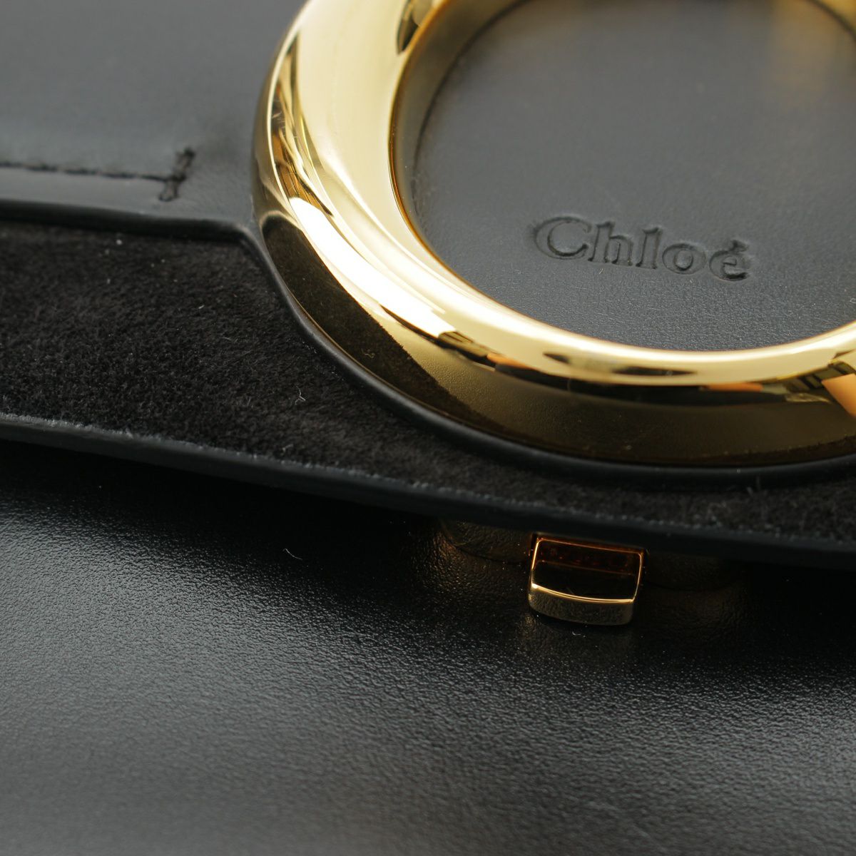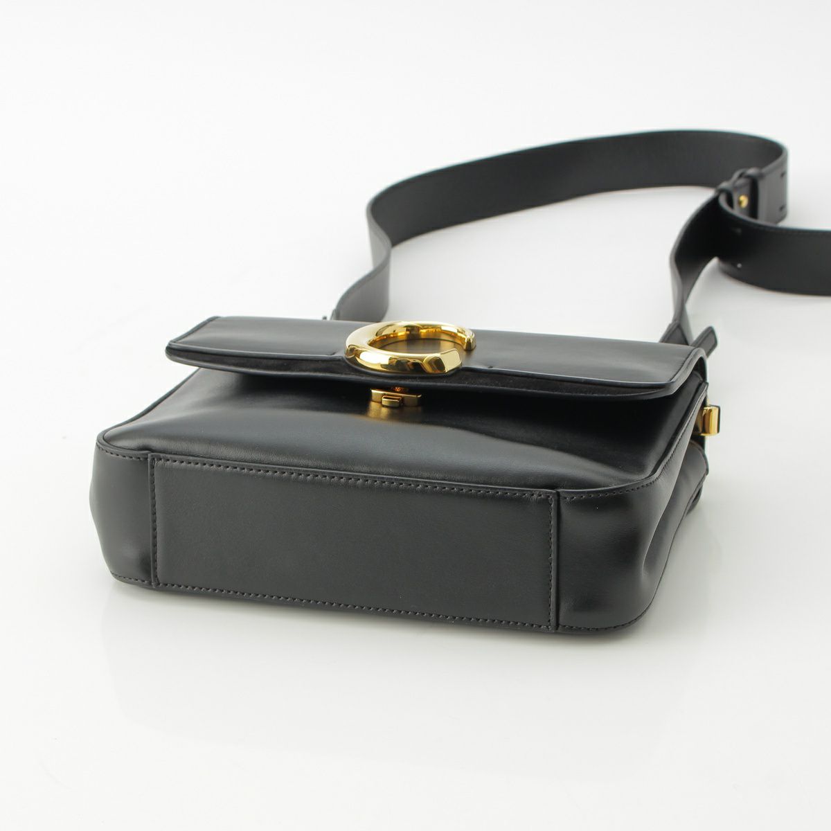 クロエ レザー Cロゴ スモール ダブルキャリー 2way ゴールド金具 ショルダーバッグ ブラック
