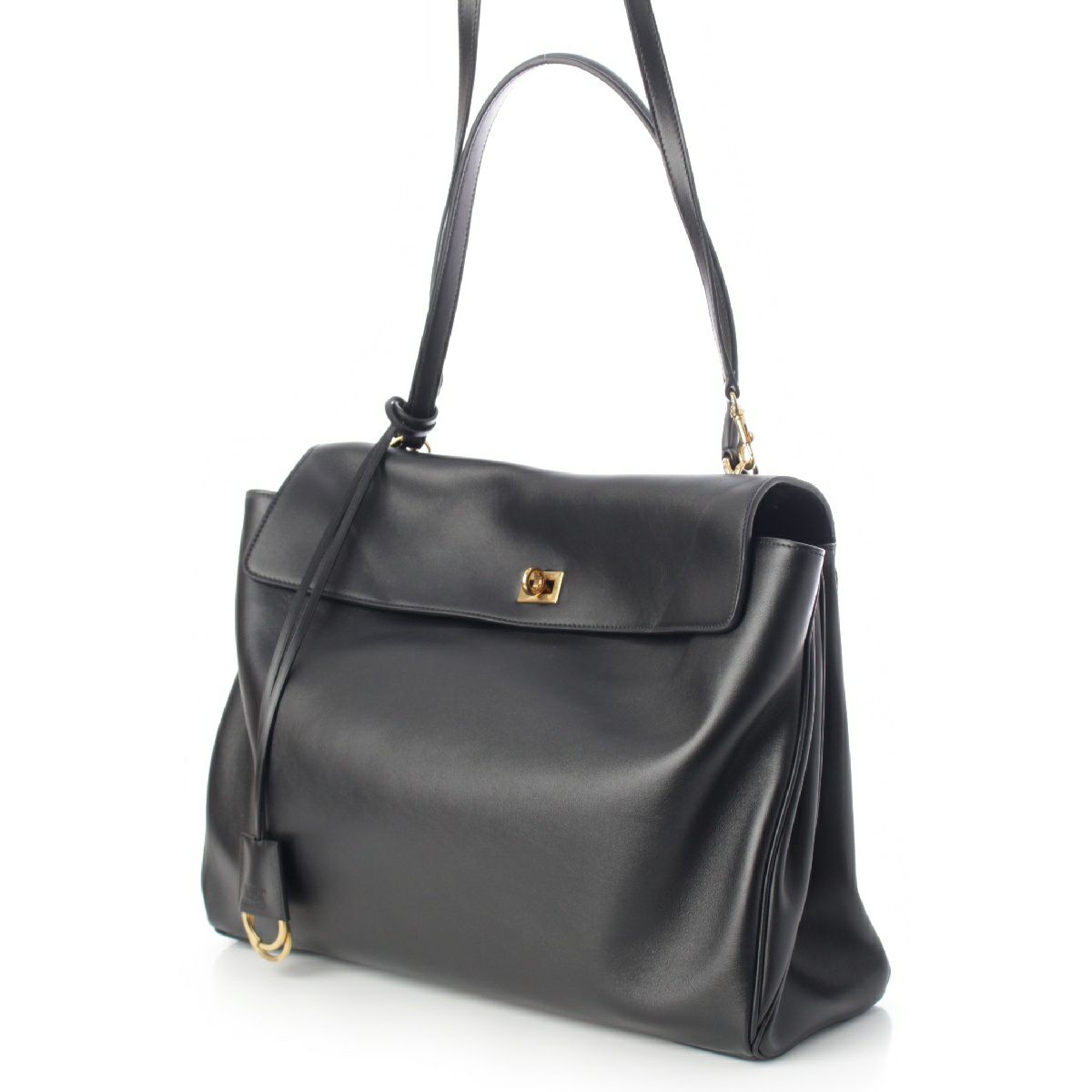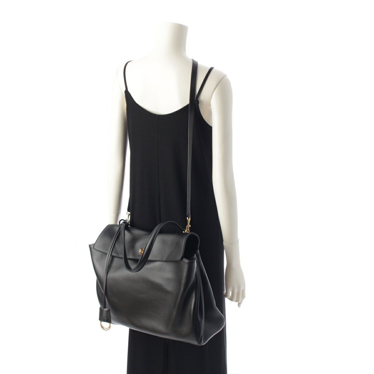 バレンシアガ 24AW ロデオ ラージ レザー 2way トップハンドル ショルダーバッグ ブラック ゴールド金具
