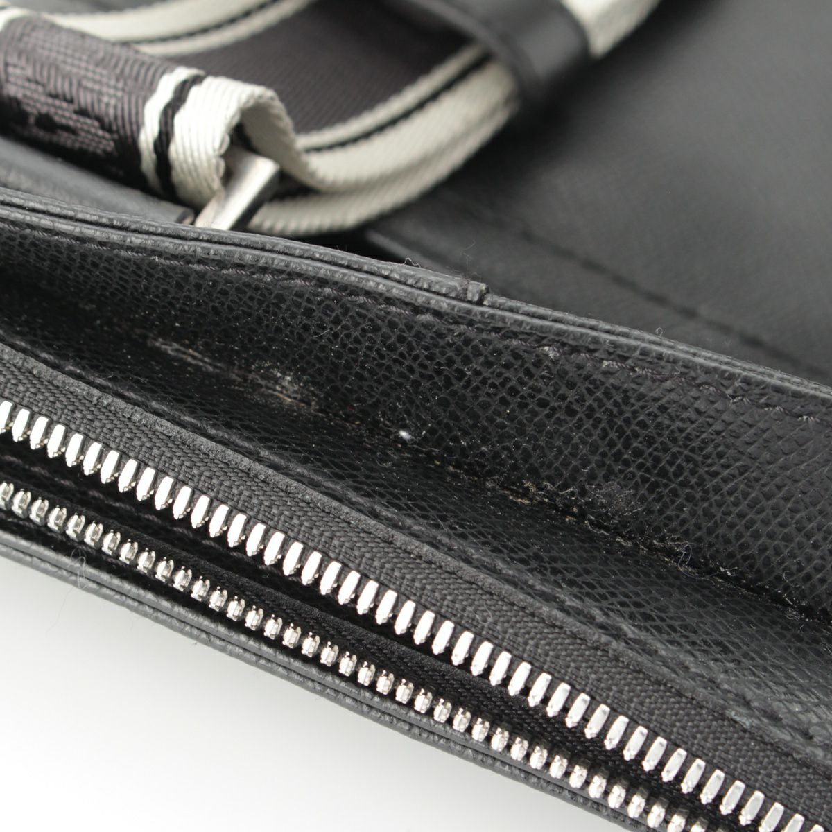 ダメージ箇所 外側 : 傷、汚れ、ニオイ、ファスナーの開閉に硬さあり、金具にくすみあり