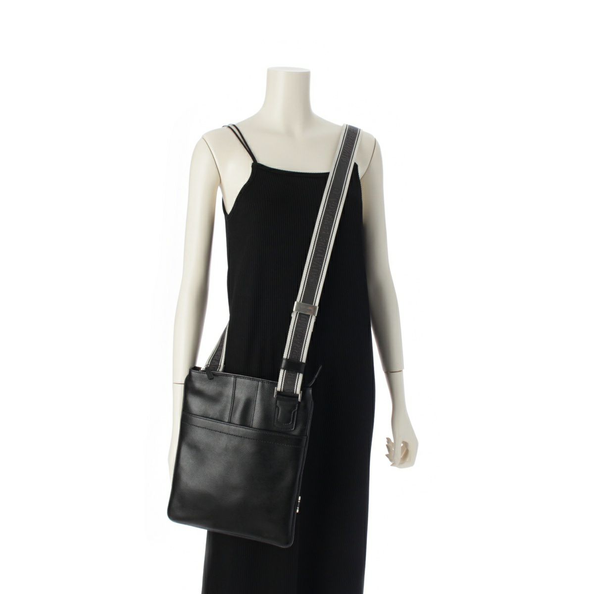 サルヴァトーレフェラガモ レザー ロゴストラップ ショルダーバッグ ブラック