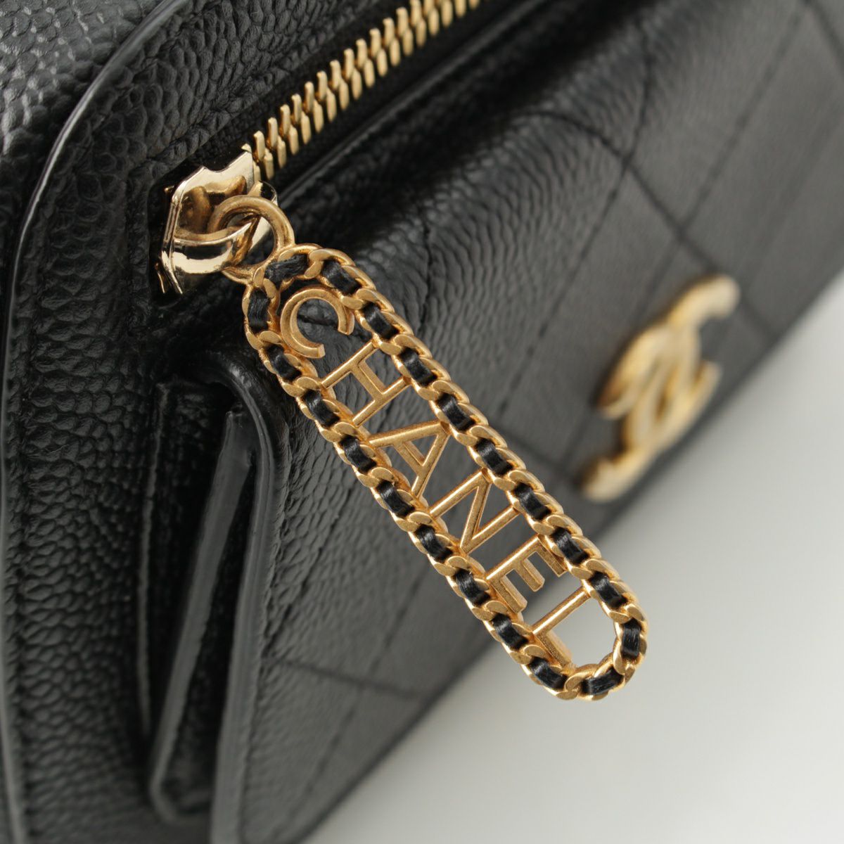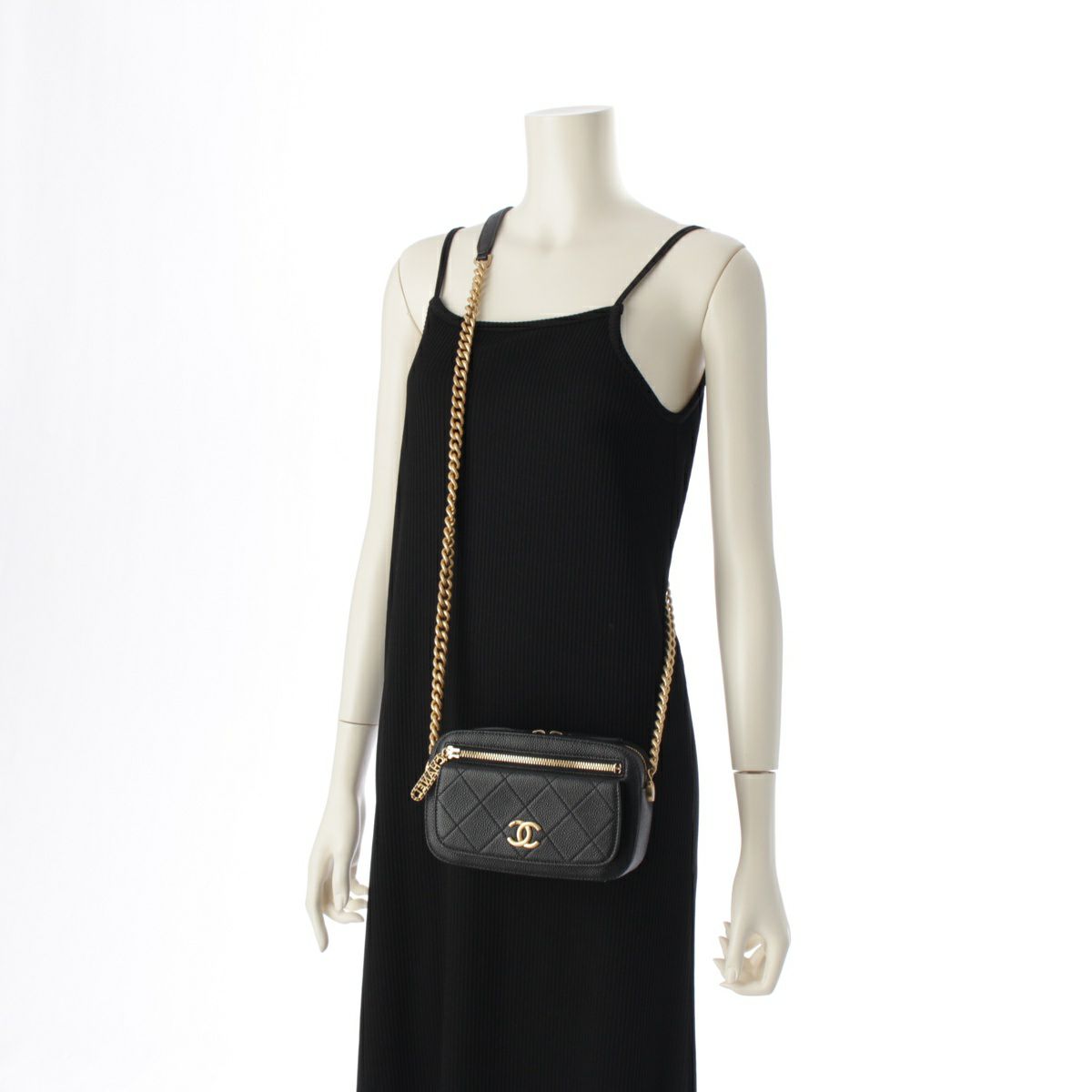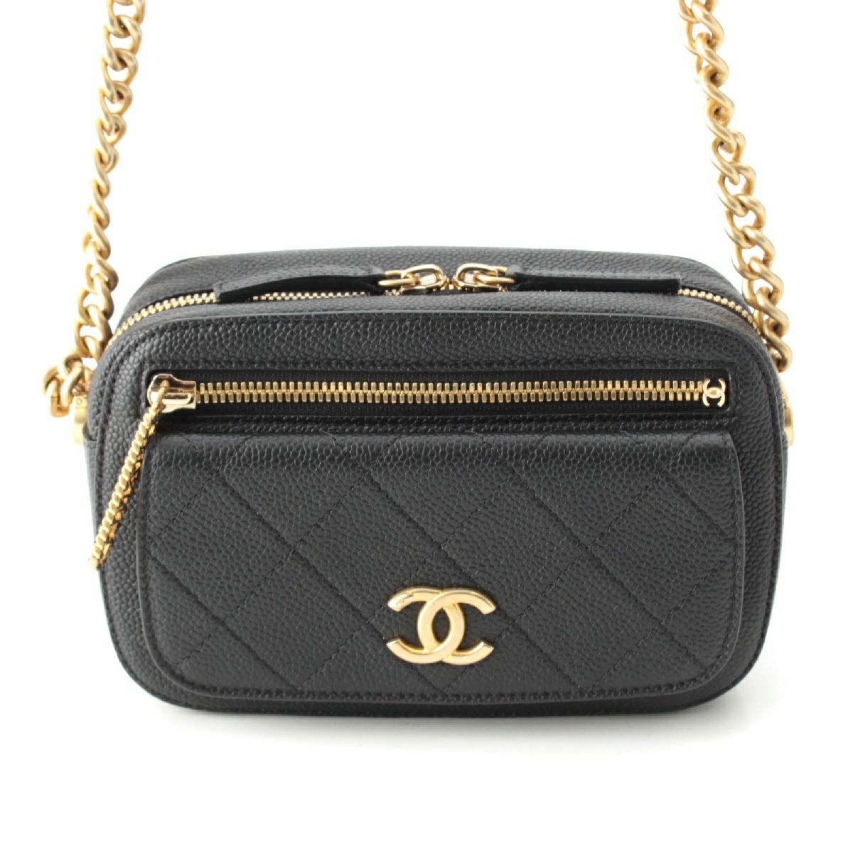 シャネル 29番台 キャビアスキン ミニフラップ チェーン ショルダーバッグ カメラバッグ クロスボディ ブラック