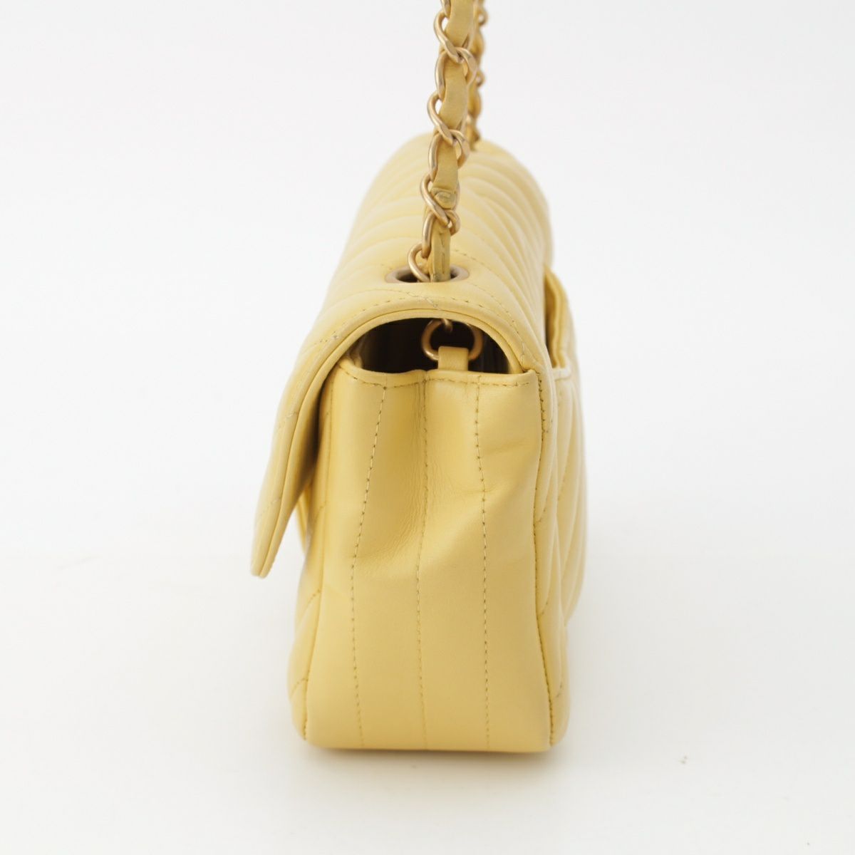 シャネル Vステッチ シェブロン ラムスキン チェーン ショルダーバッグ イエロー