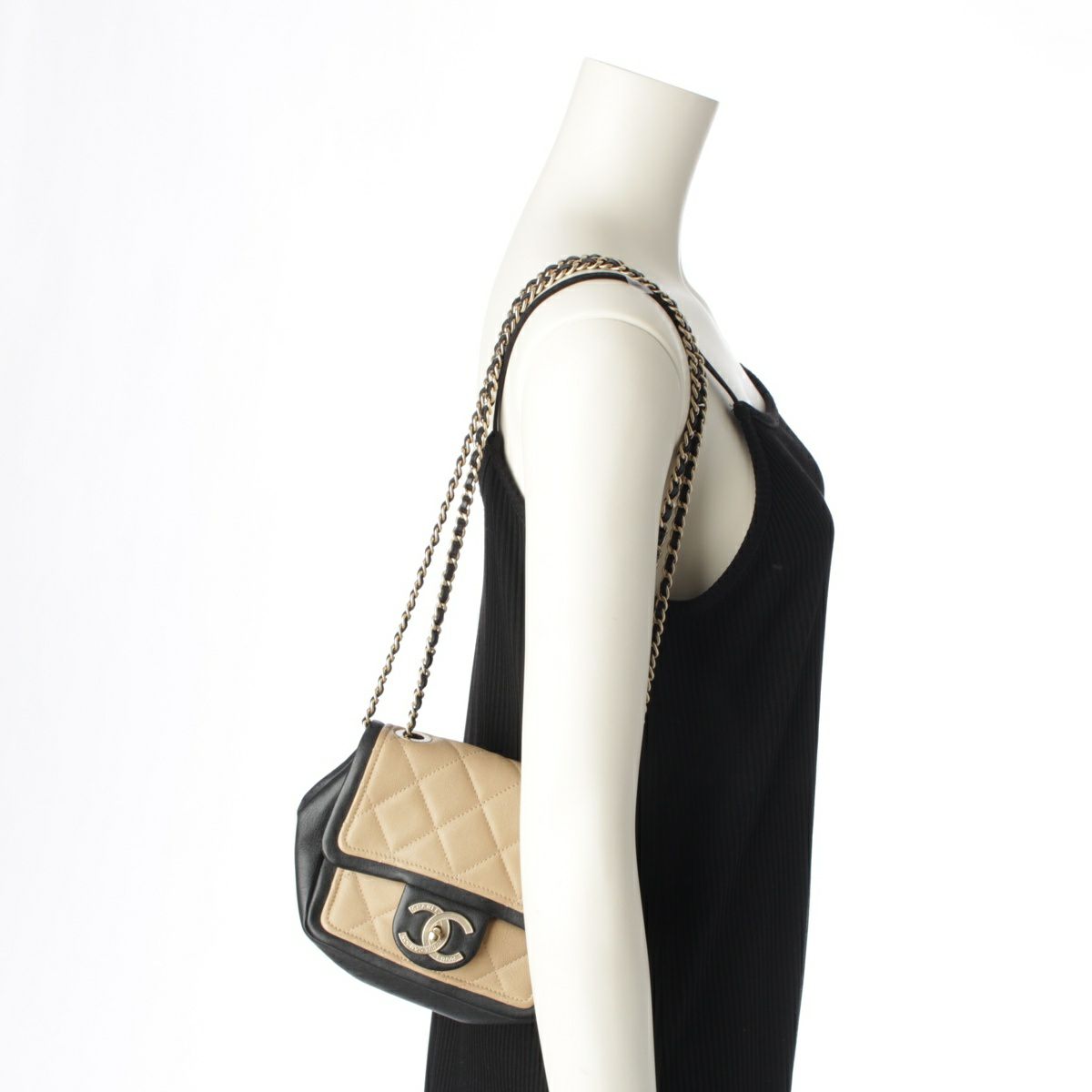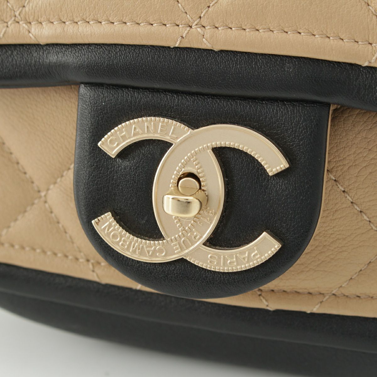シャネル 19番台 ラムスキン ミニ マトラッセ チェーンショルダー ココマーク ターンロック カンボン ショルダーバッグ バッグ 鞄 かばん A92210 バイカラー ブラック ベージュ