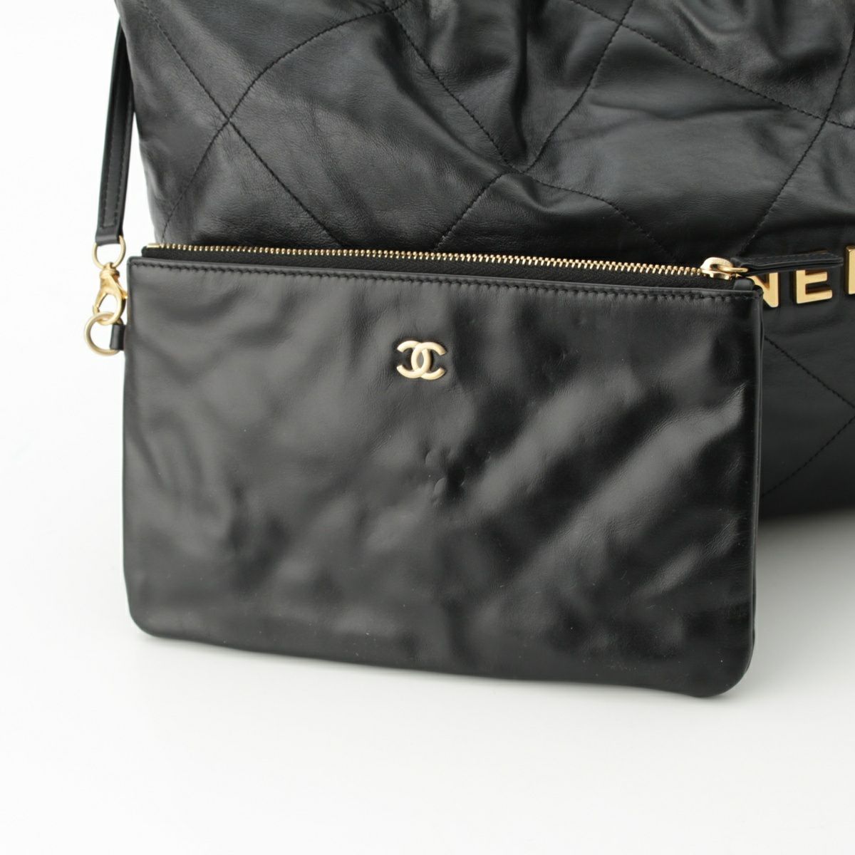 シャネル CHANEL22 スモール シャイニーカーフスキン ロゴ ココマーク マトラッセ チェーン ショルダーバッグ AS3260 ブラック