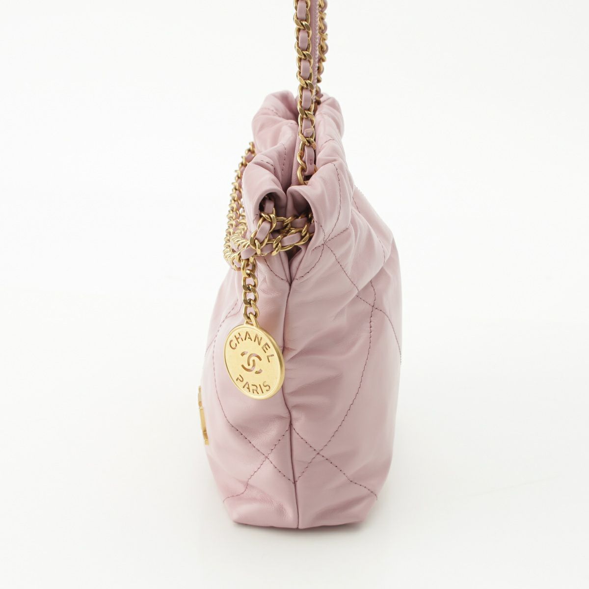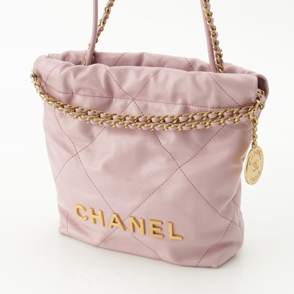 シャネル シャネル22 シャインカーフ ミニ チェーン ショルダーバッグ ピンク