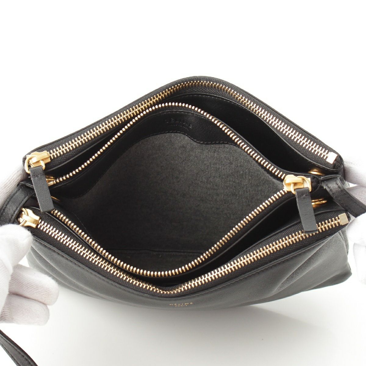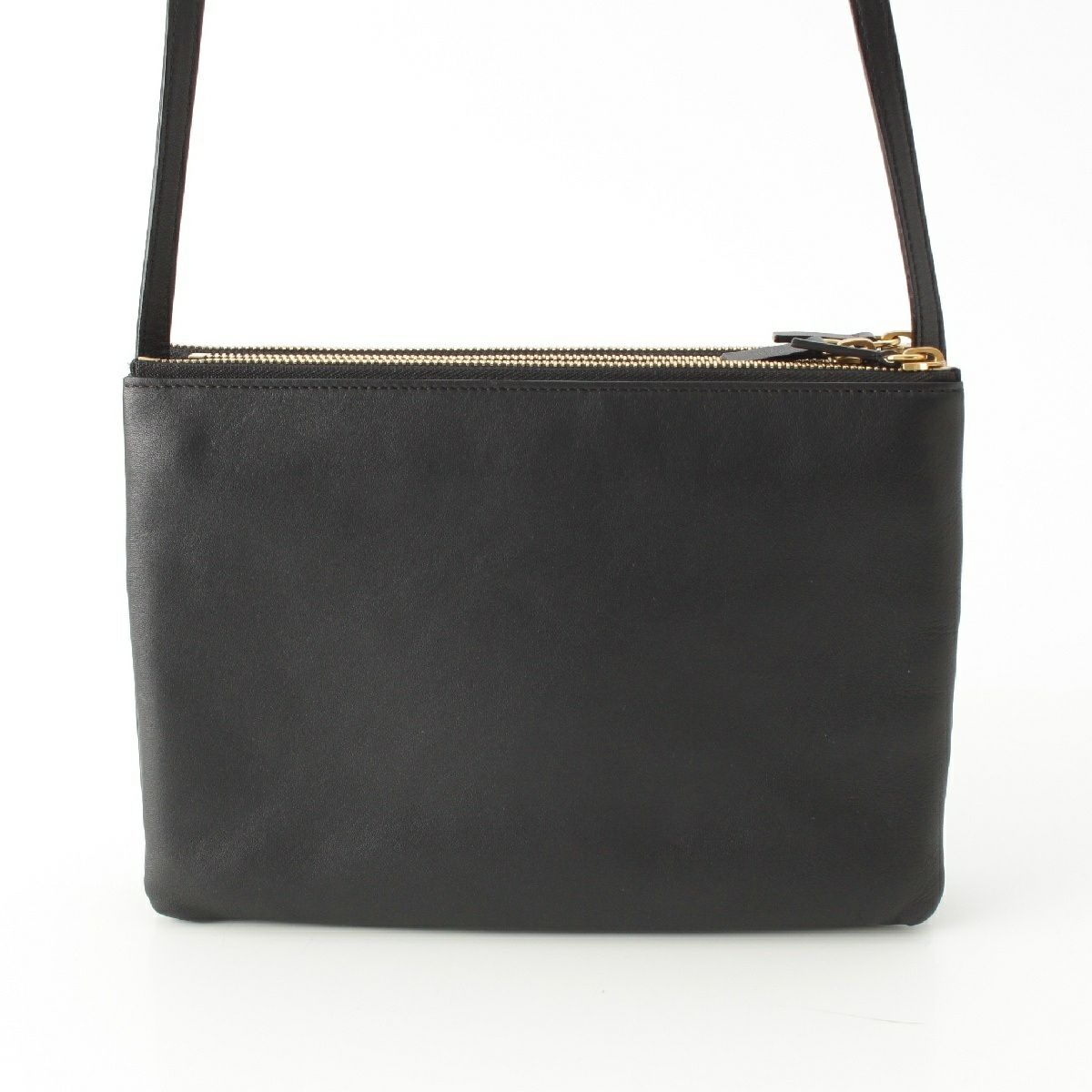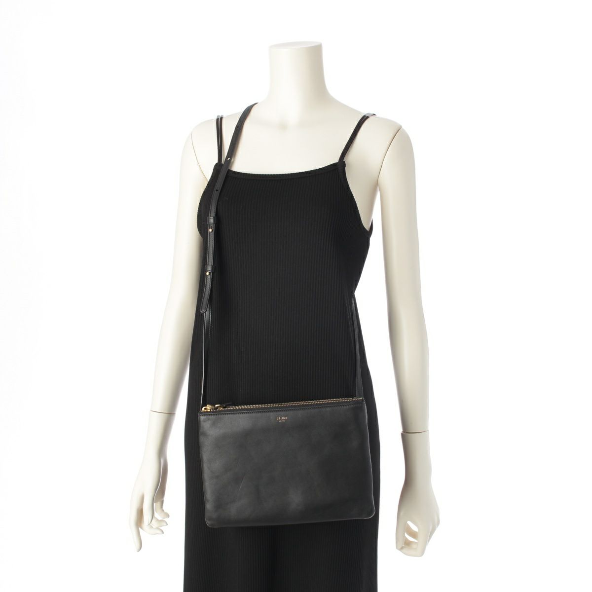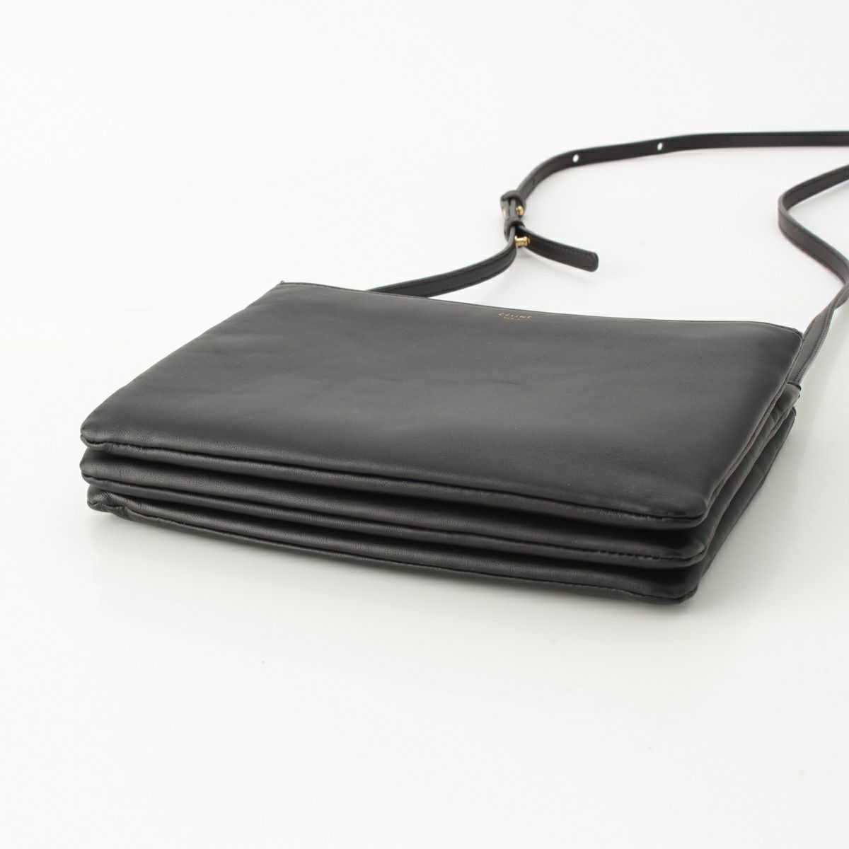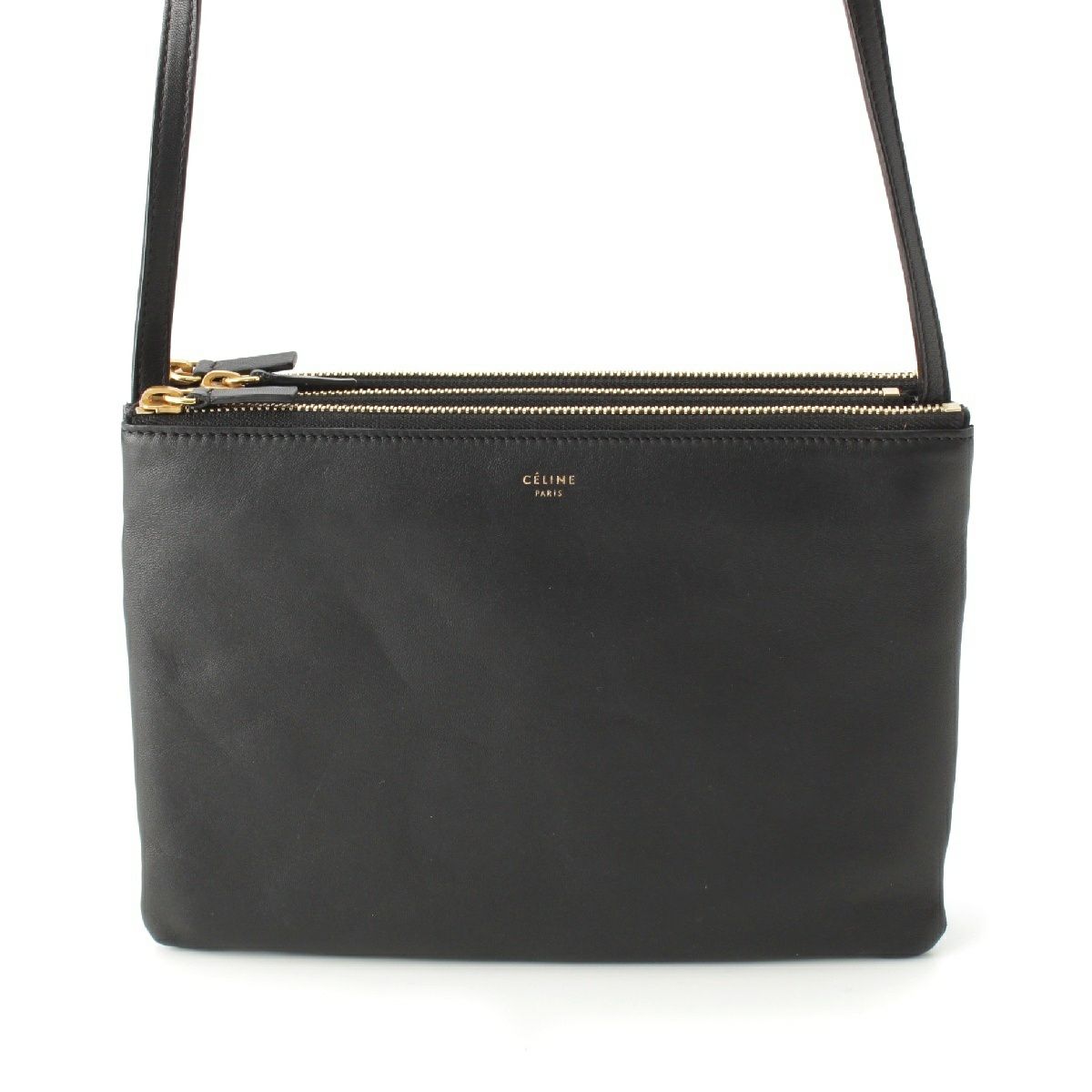 セリーヌ トリオ ラージ レザー ショルダーバッグ クロスボディ ブラック