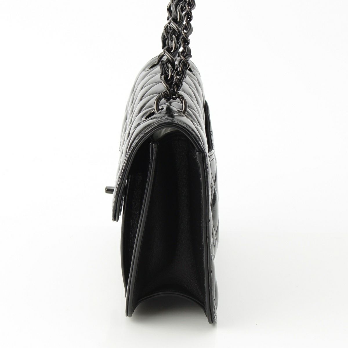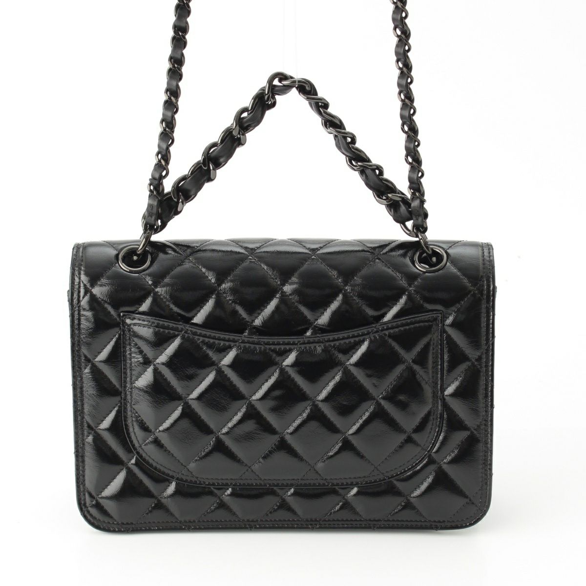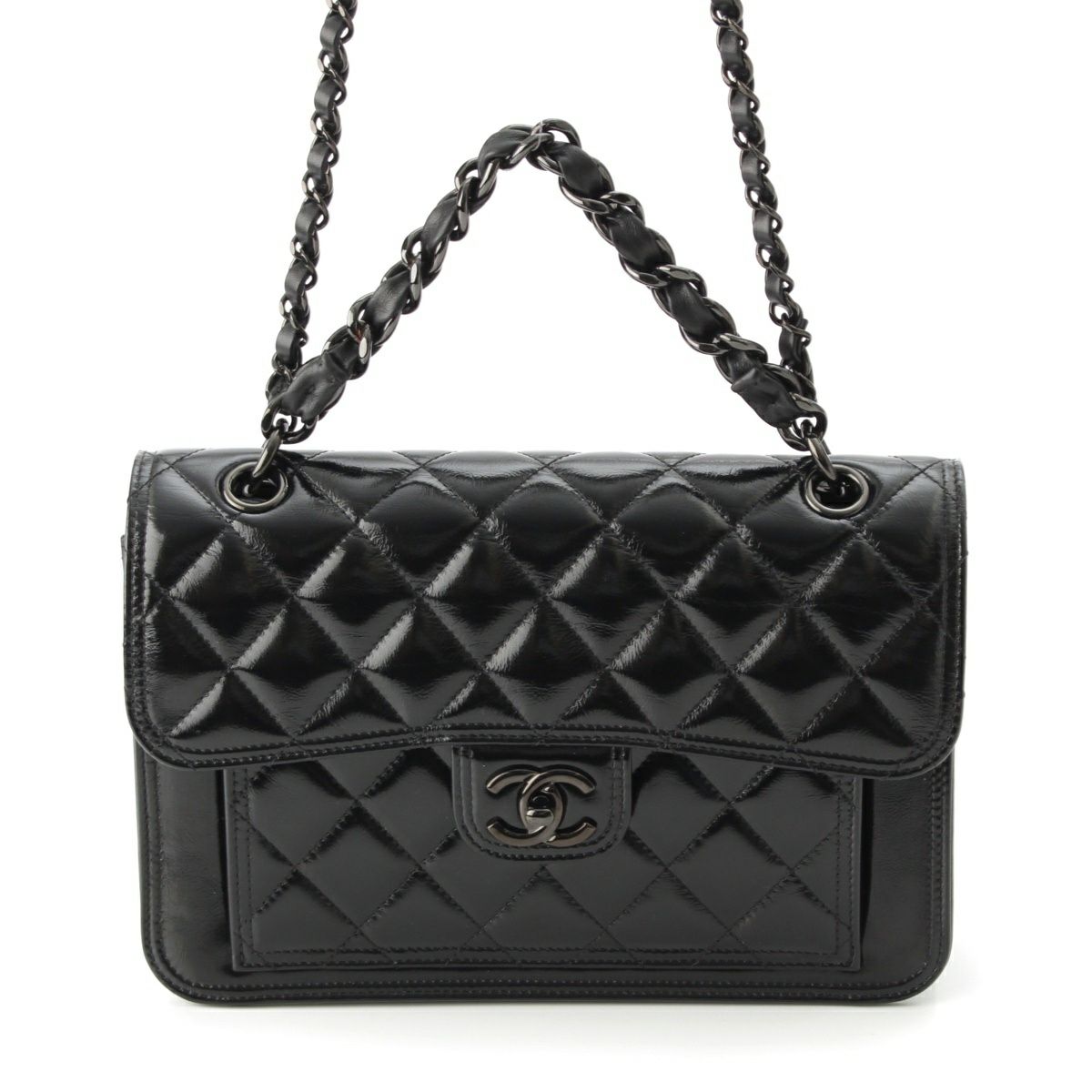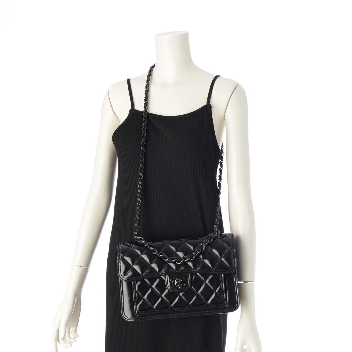 シャネル マトラッセ シャイニーカーフレザー ココマーク Wチェーン ショルダーバッグ 2WAY ソーブラック