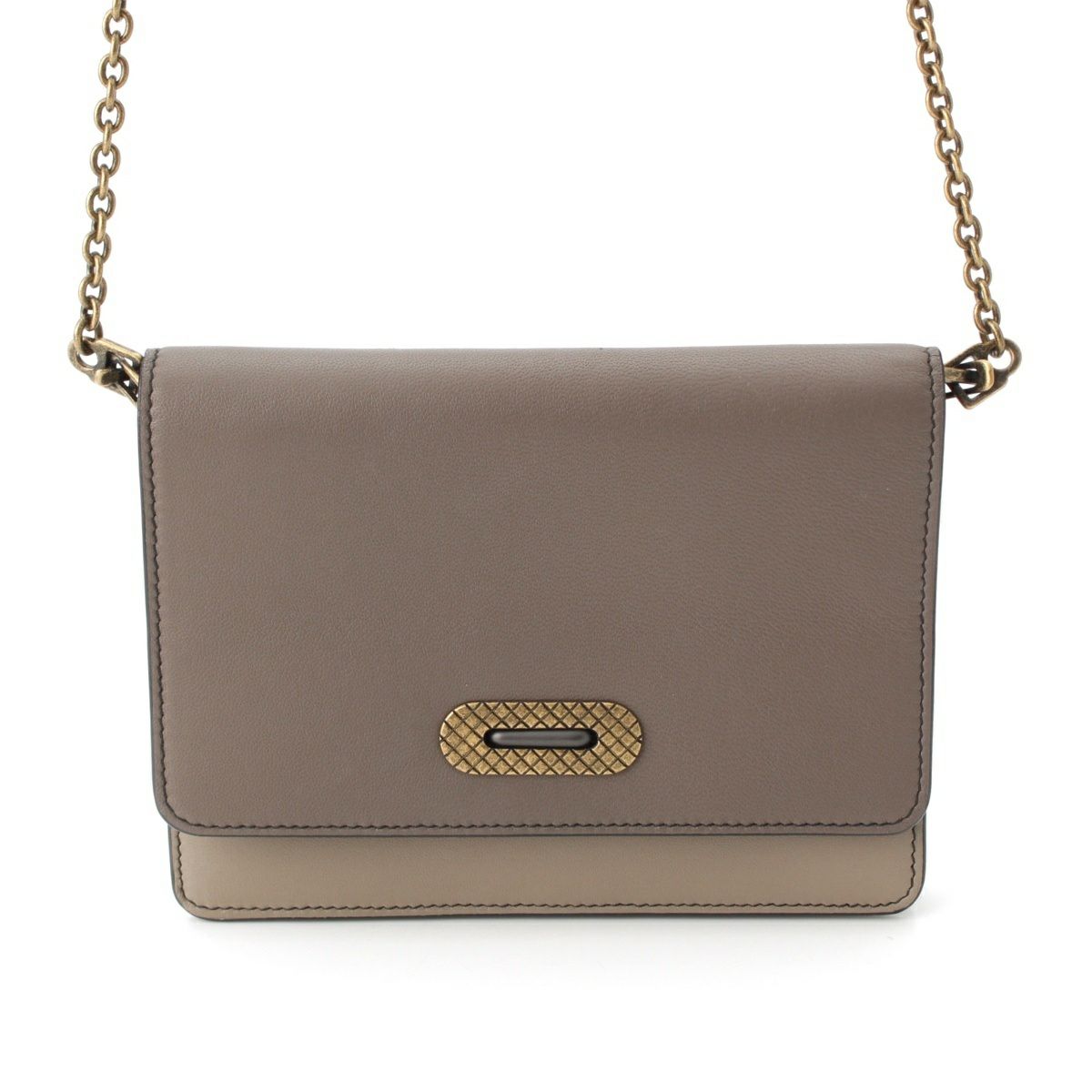 ボッテガヴェネタ レザー アンティーク金具 ハーフフラップ チェーン ショルダーバッグ ブラウン グレージュ系