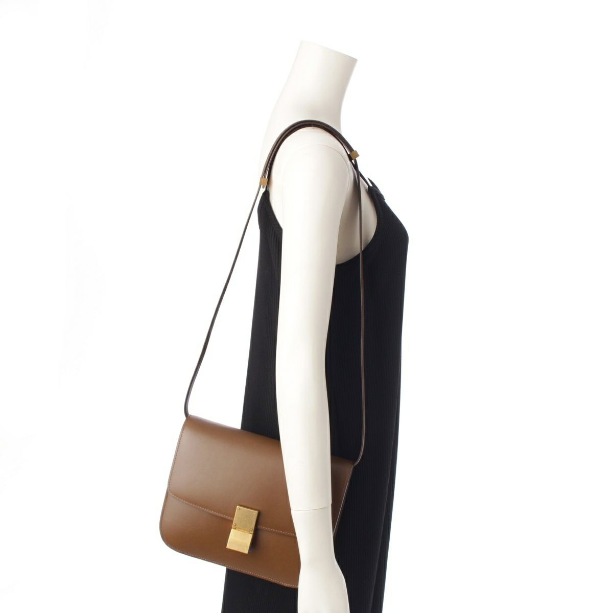 セリーヌ クラシック ボックス ミディアム レザー ショルダーバッグ ブラウン