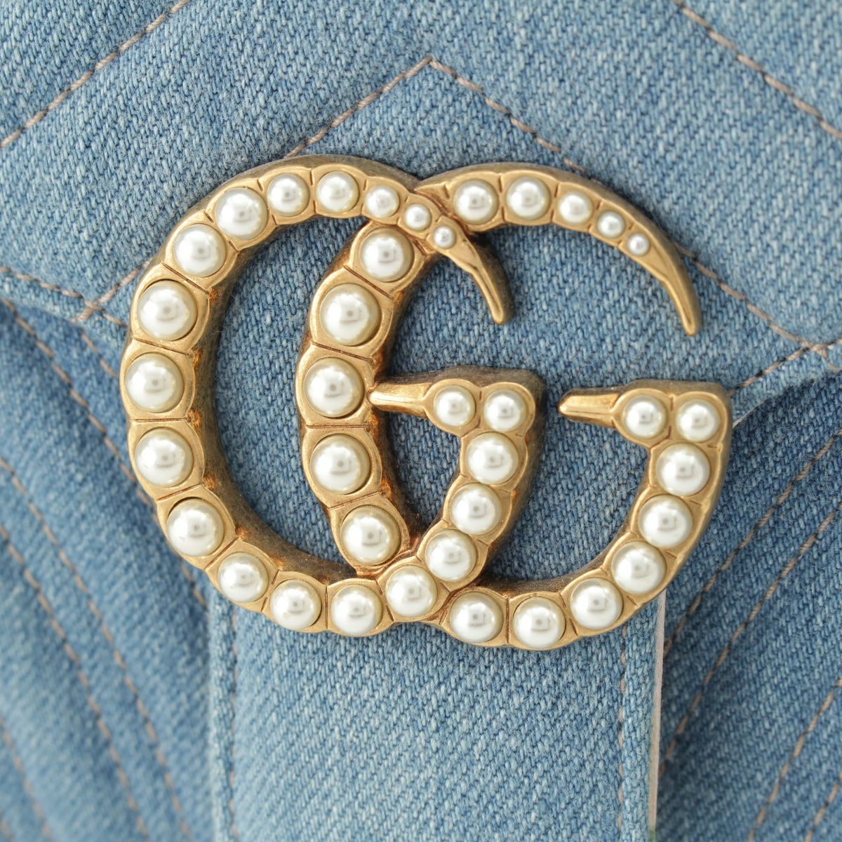 グッチ GGマーモント デニム パール チェーン ショルダーバッグ 443497 ブルー