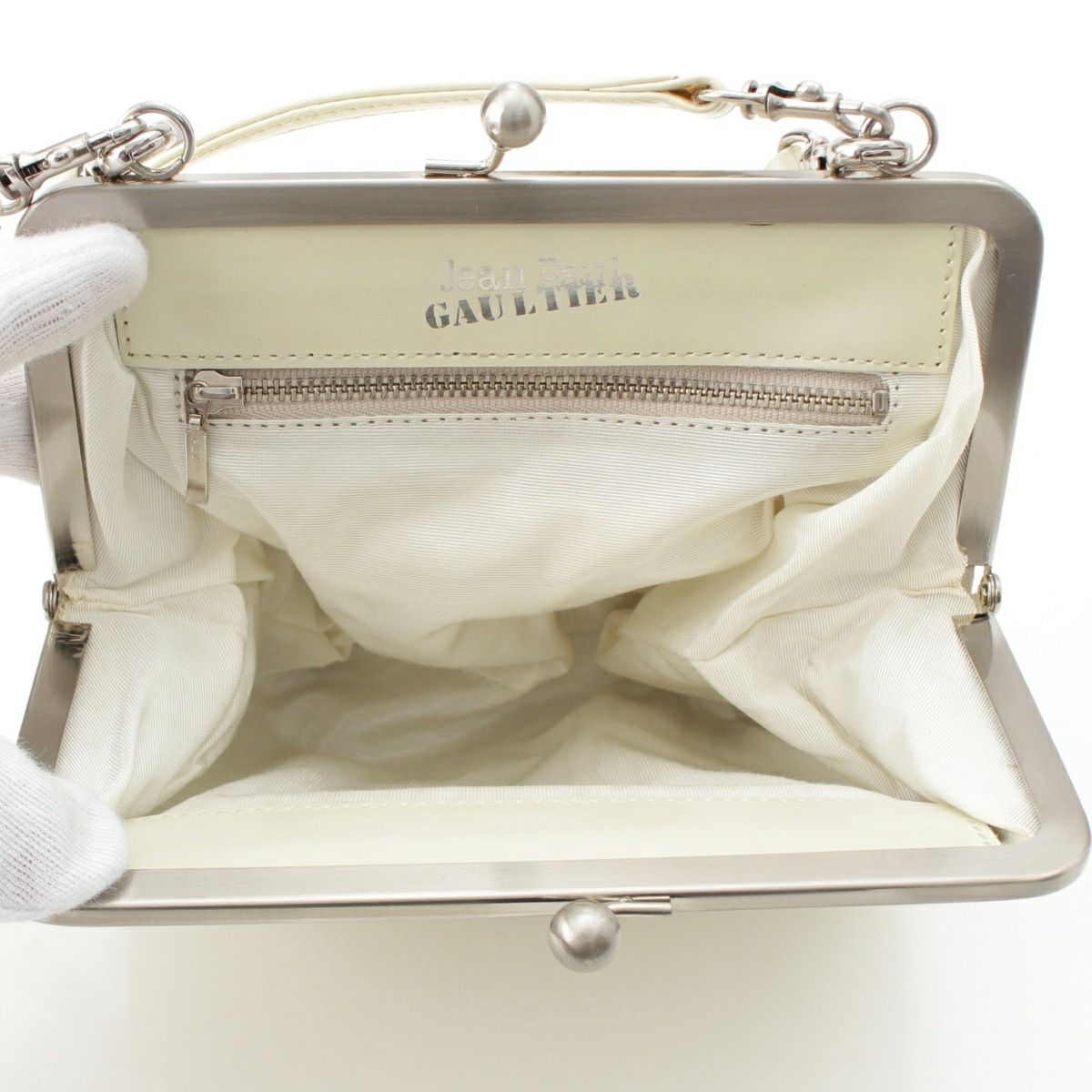 ジャンポールゴルチエ ニューローズ がま口 ショルダーバッグ アイボリー
