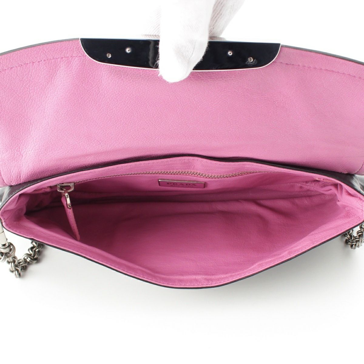 プラダ レザー チェーン ショルダーバッグ ブラック