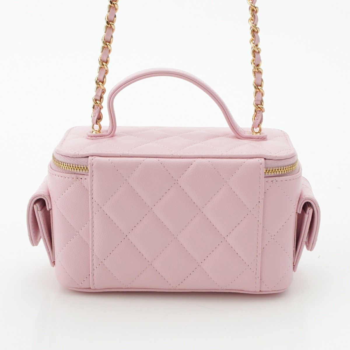シャネル 25SS キャビアスキン マトラッセ バニティバッグ 2way ショルダーバッグ AP3017 ピンク