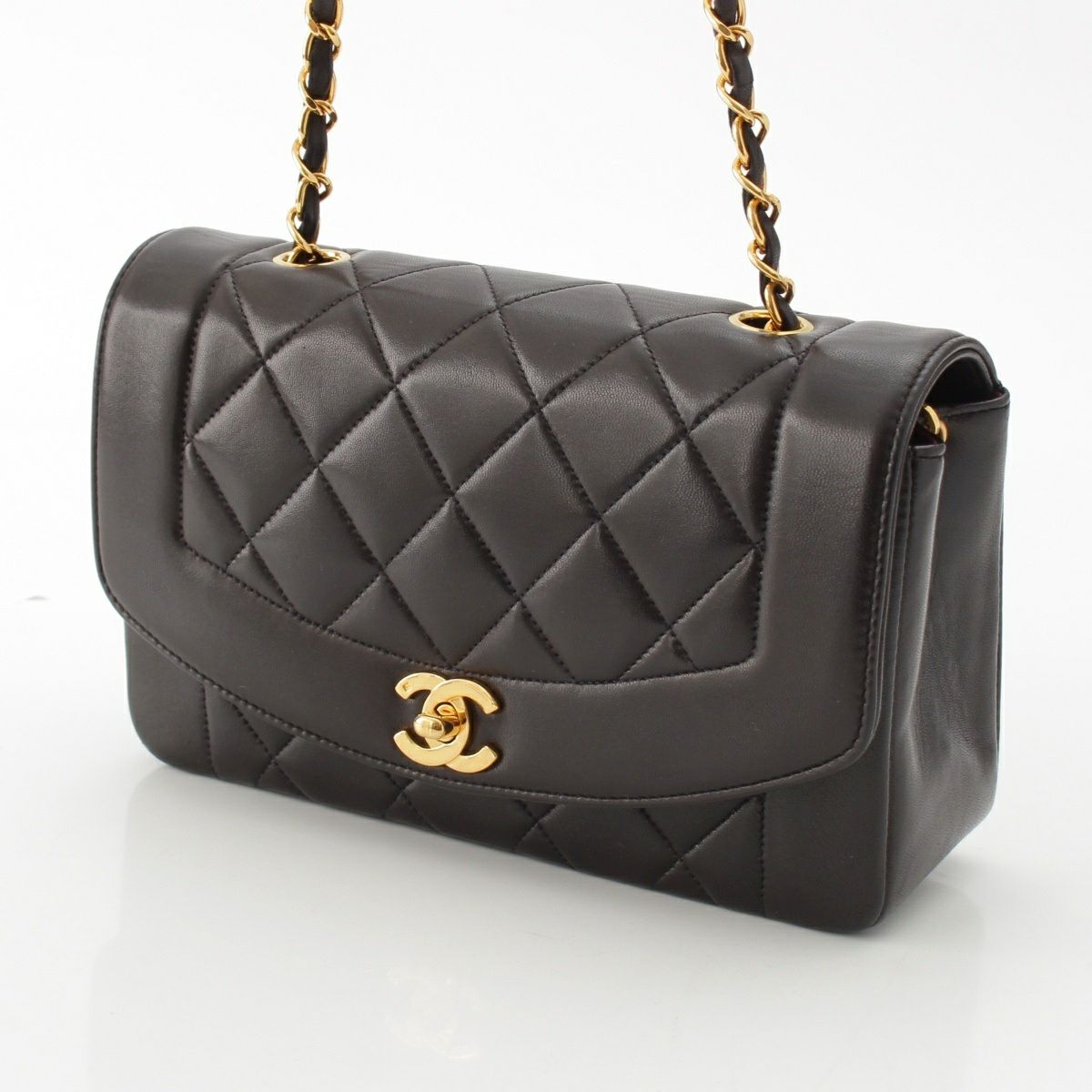 シャネル ダイアナ22 レザー ココマーク マトラッセ チェーン ショルダーバッグ ブラック