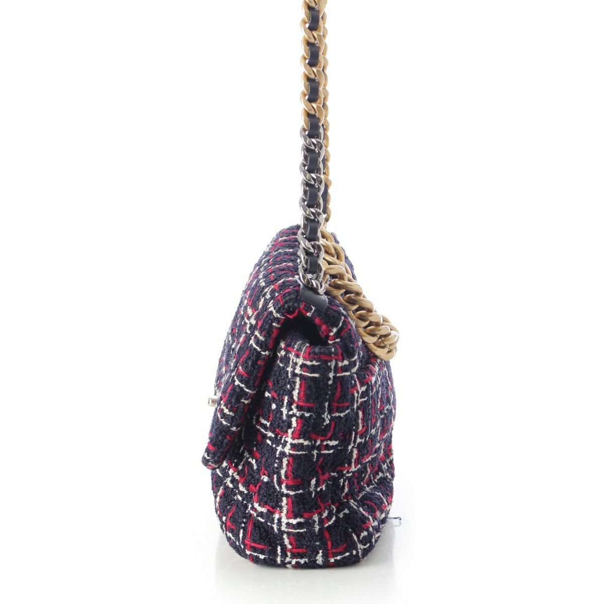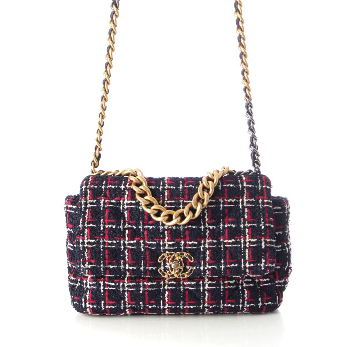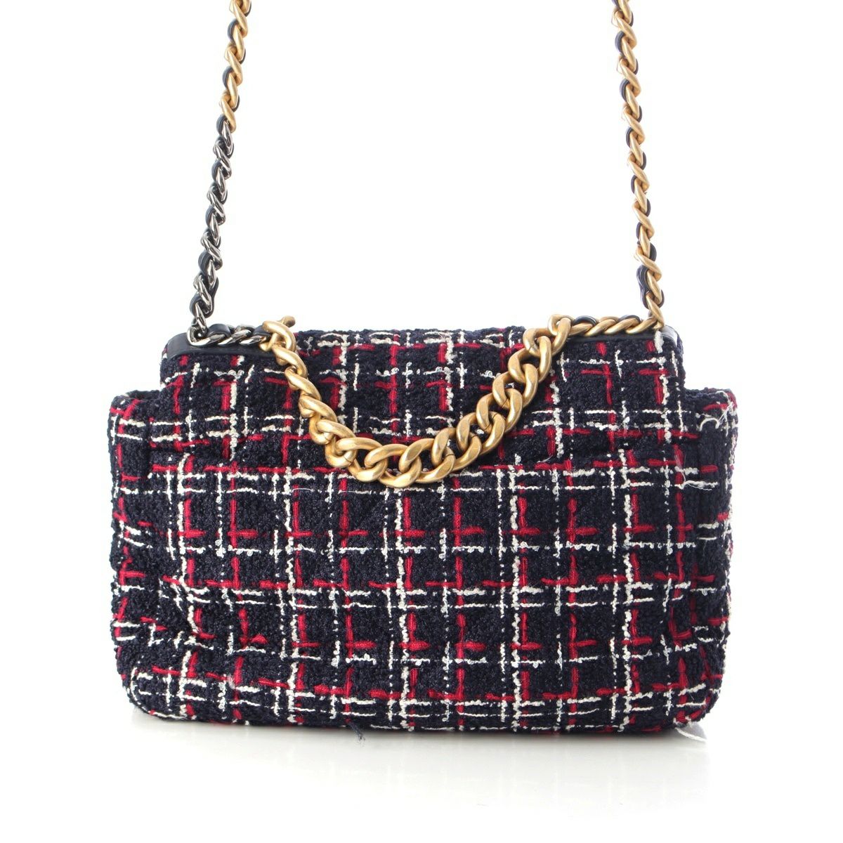 シャネル 29番台 19 ラージ ツイード ディズヌフ ココマーク チェーン ショルダーバッグ ネイビー レッド ホワイト