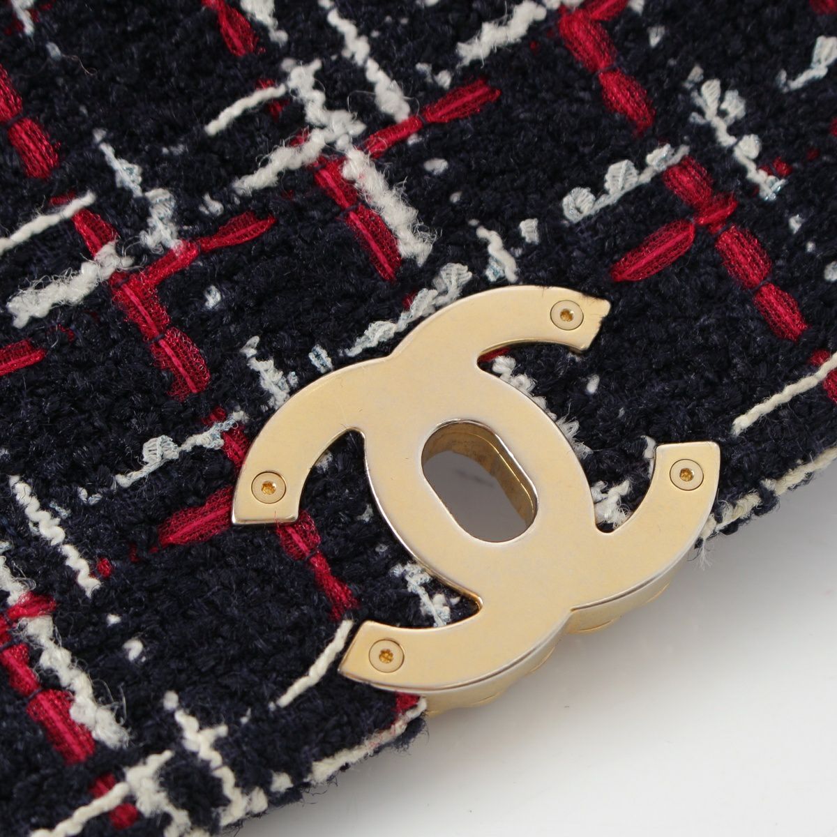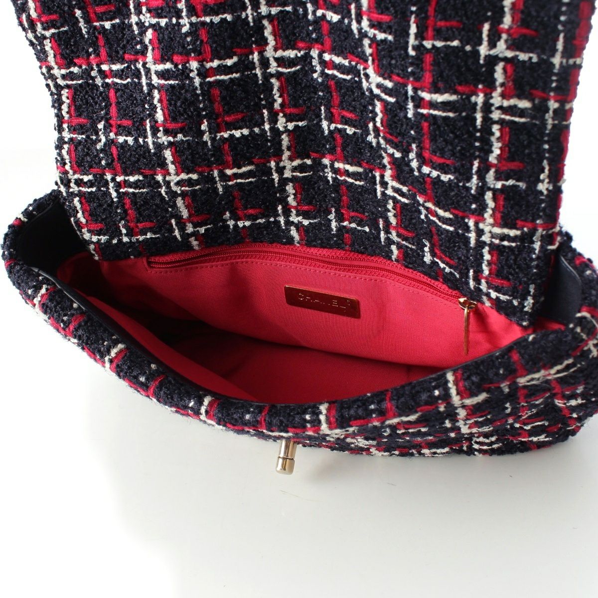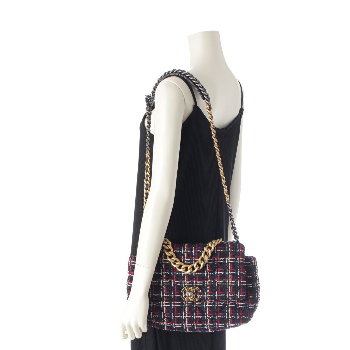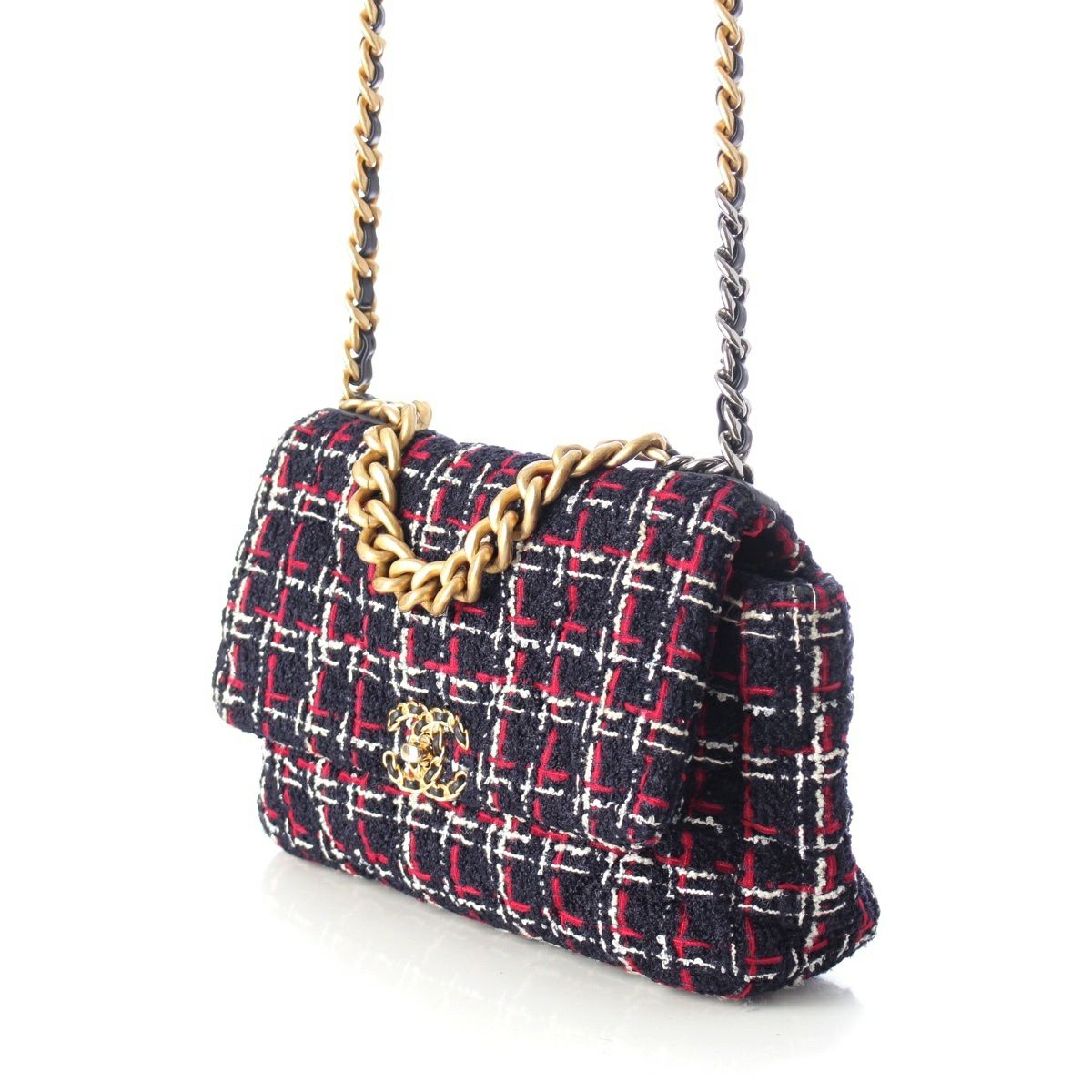 シャネル 29番台 19 ラージ ツイード ディズヌフ ココマーク チェーン ショルダーバッグ ネイビー レッド ホワイト