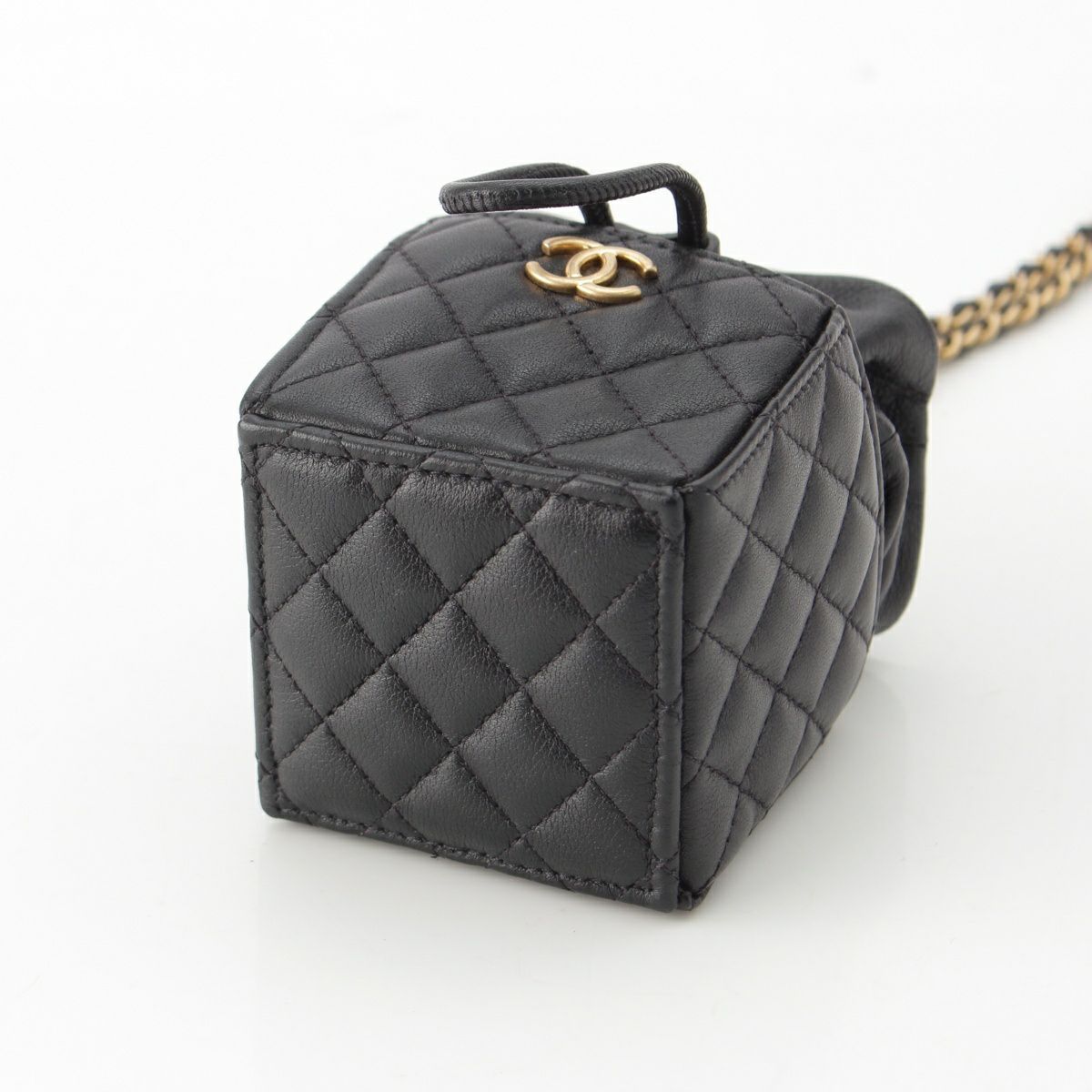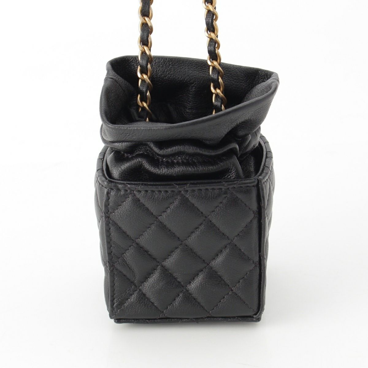 シャネル マトラッセ ラムスキン ミニキューブ 巾着 ショルダーバッグ ブラック