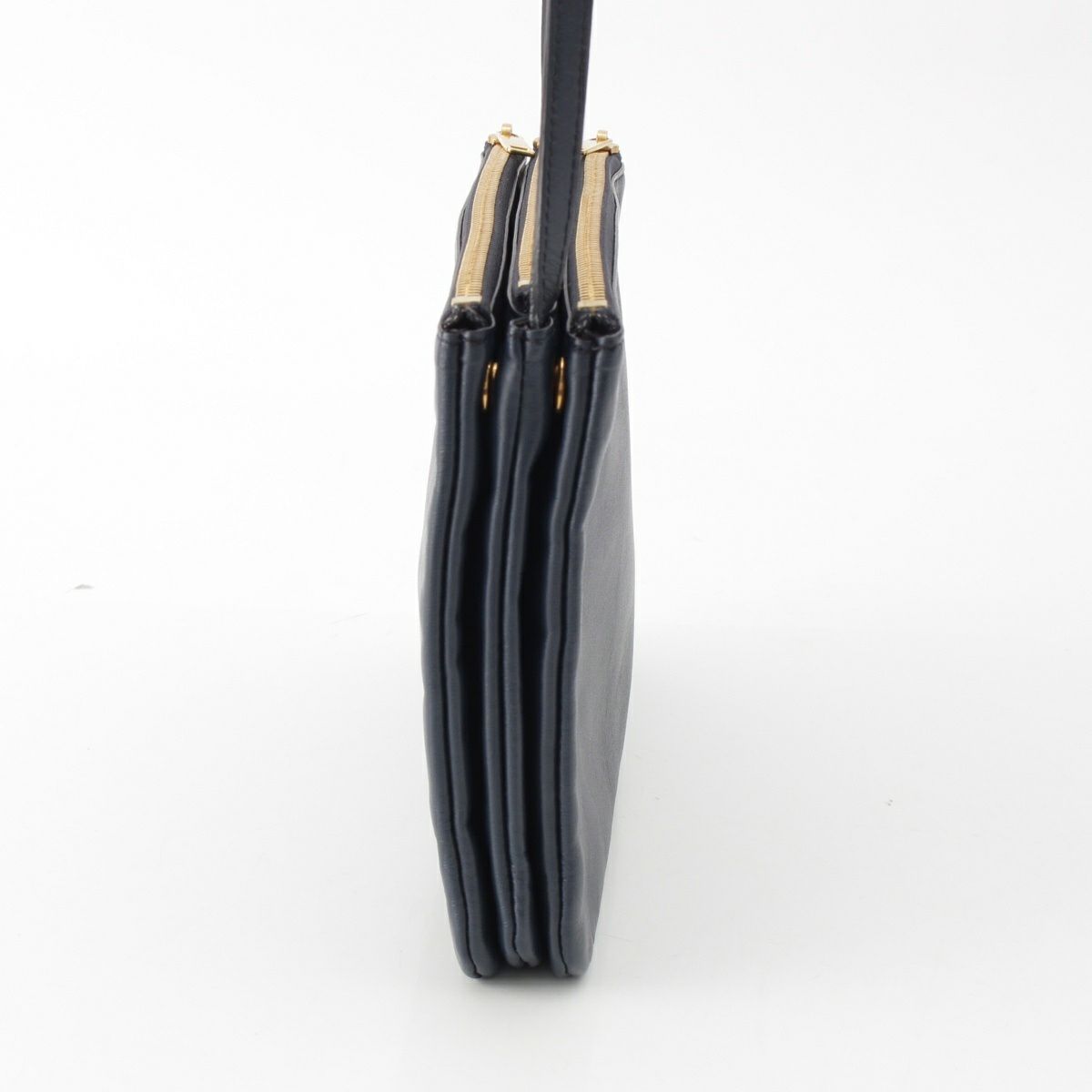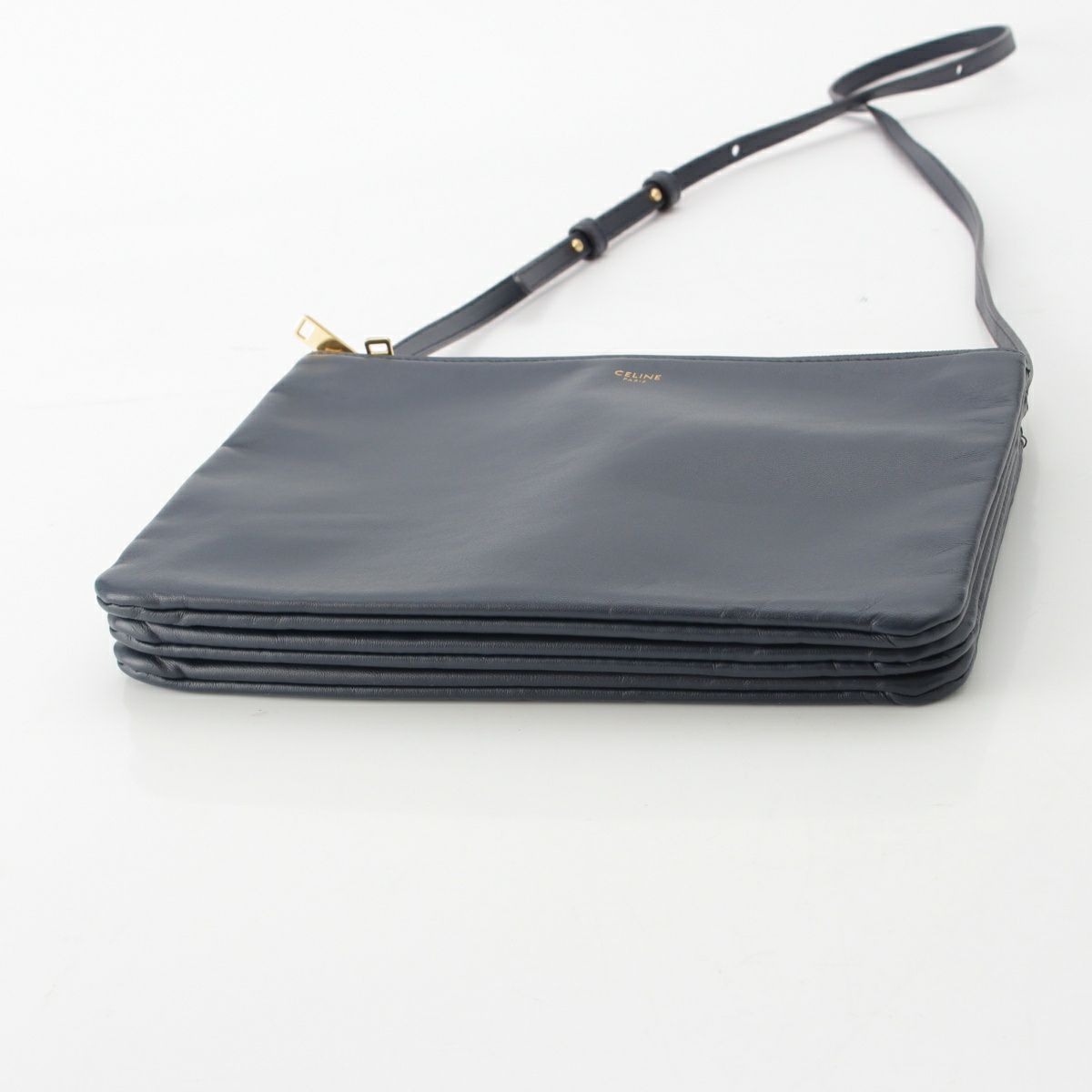 セリーヌ トリオ ラージ レザー ショルダーバッグ ネイビー