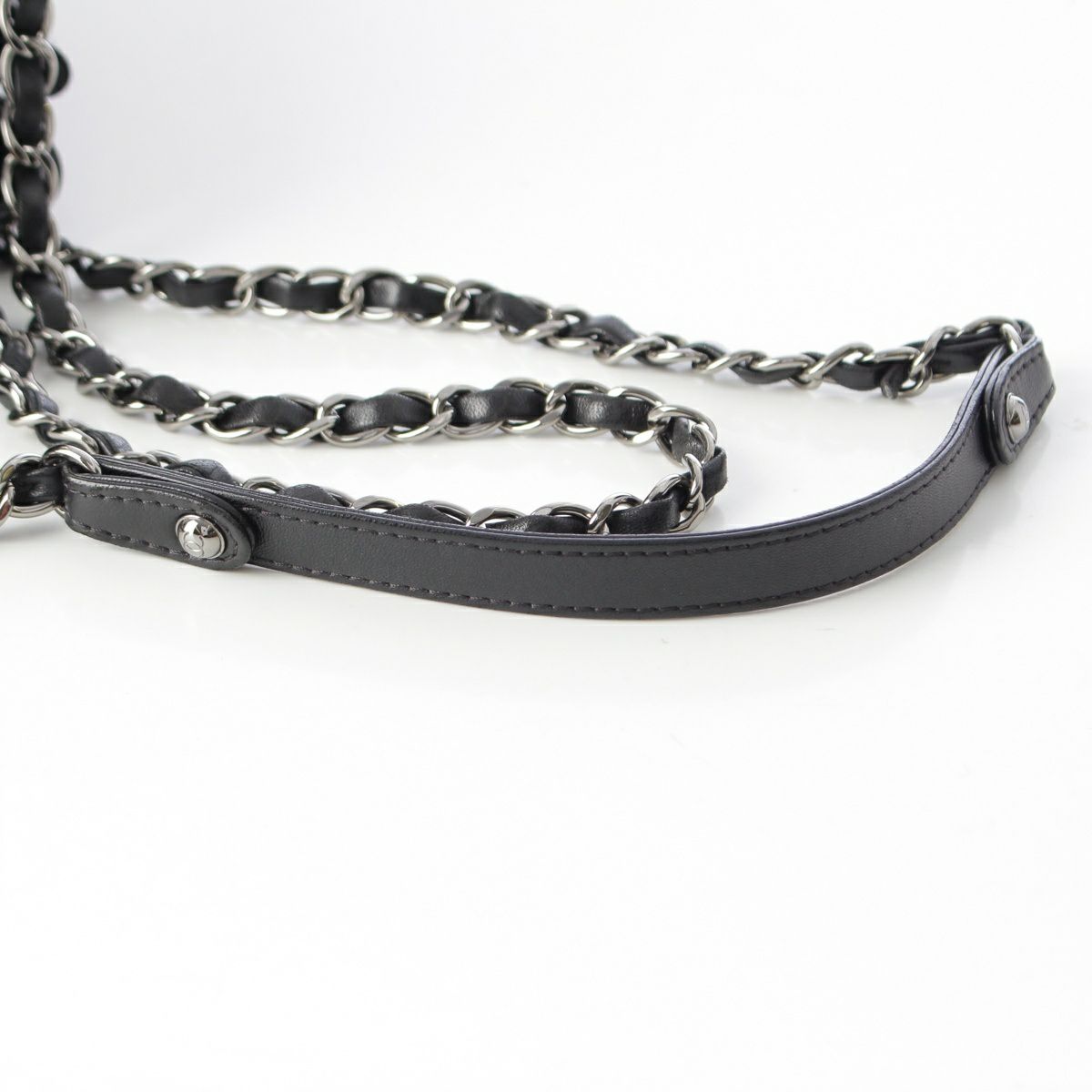 シャネル 23番台 ラムスキン マトラッセ 巾着 シルバー金具 チェーン バケット ショルダーバッグ ブラック