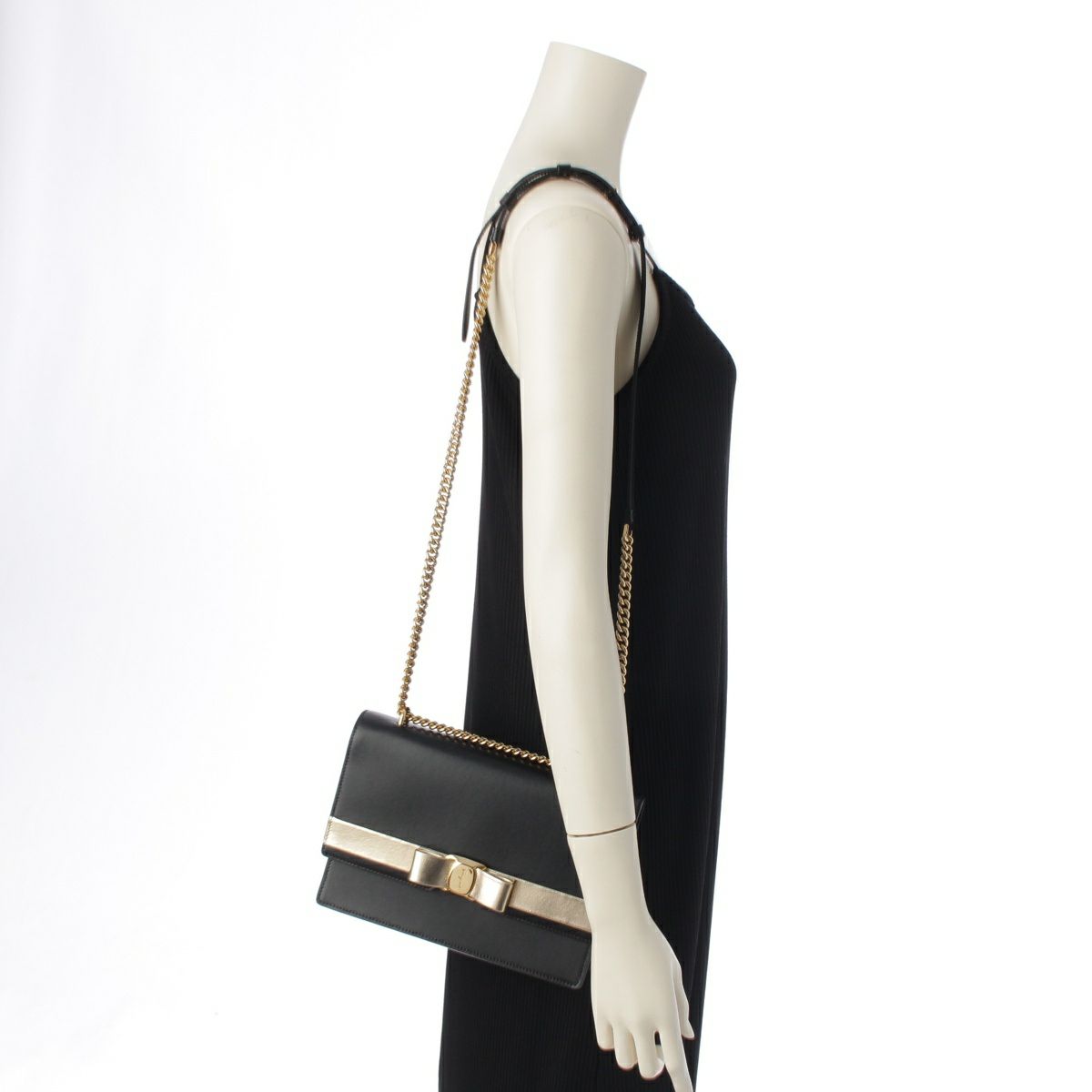 サルヴァトーレフェラガモ ヴァラ リボン 2WAY チェーン ショルダーバッグ EZ-21 1284 ブラック