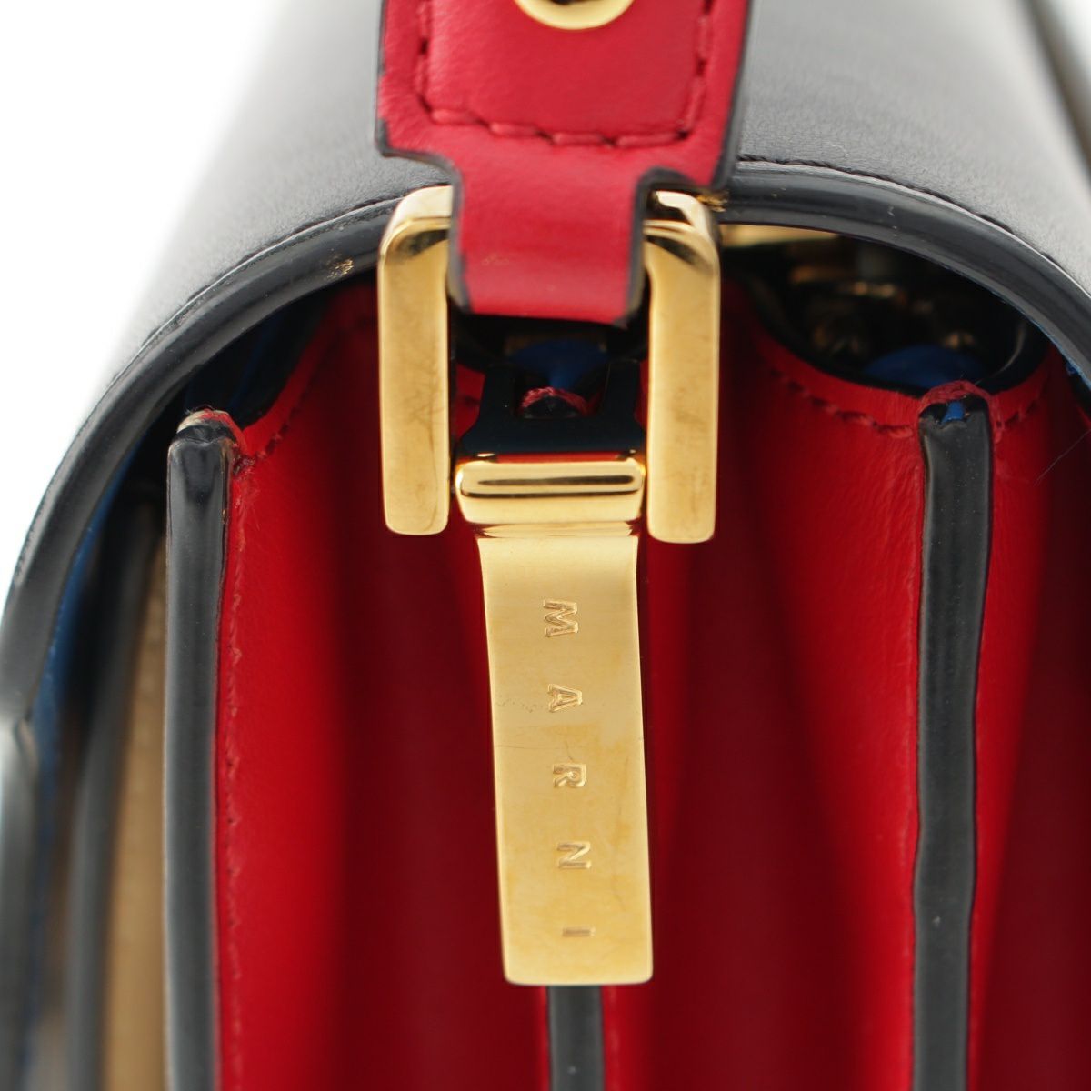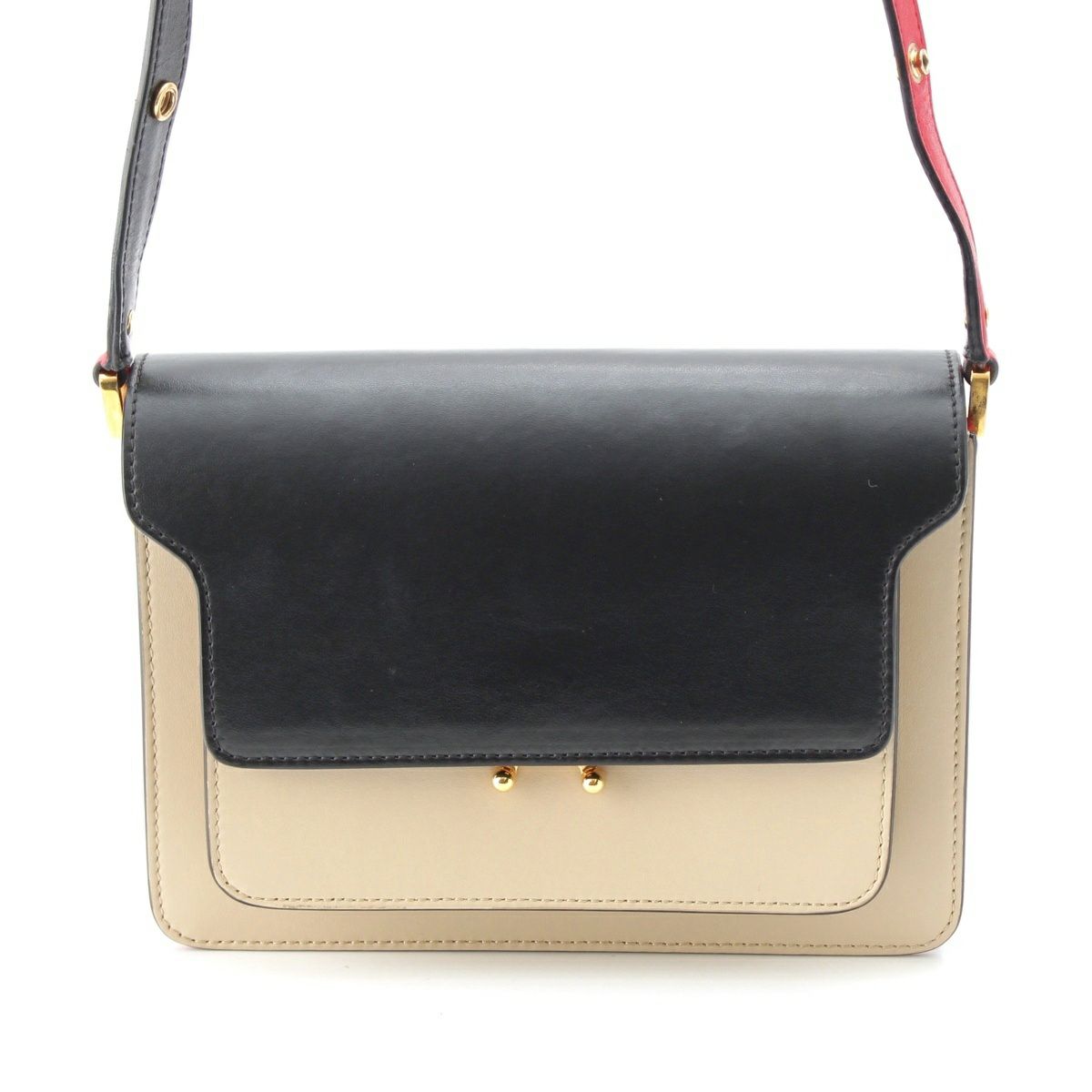 マルニ レザー トランク ショルダーバッグ ブラック×ベージュ