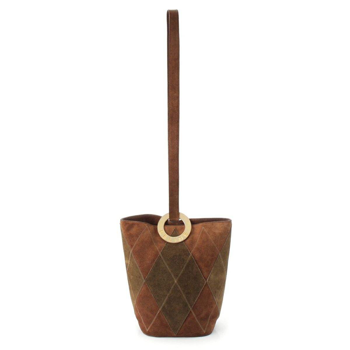 セリーヌ ヴィンテージ スエード サークルロゴ バケット ショルダーバッグ ブラウン