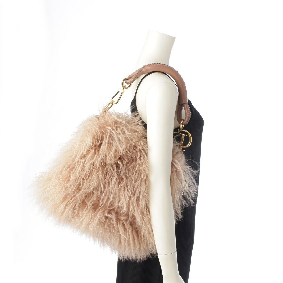 ディオール 2010年 10FW レザー ガリアーノ期 HIVER Libertine リバティーン ホーボー ショルダーバッグ ピンクベージュ ゴールド金具