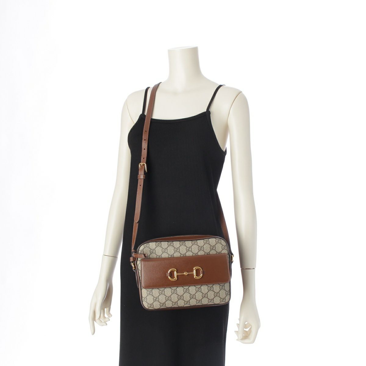 グッチ GGスプリーム ホースビット PVC×レザー ゴールド金具 ショルダーバッグ 645454 ブラウン ベージュ