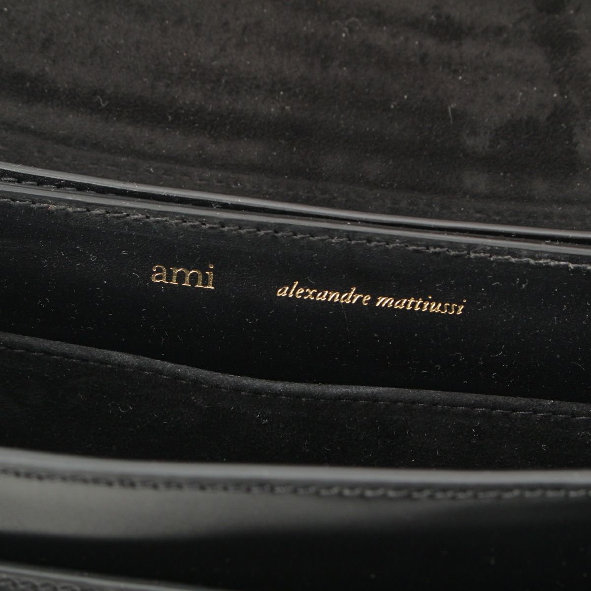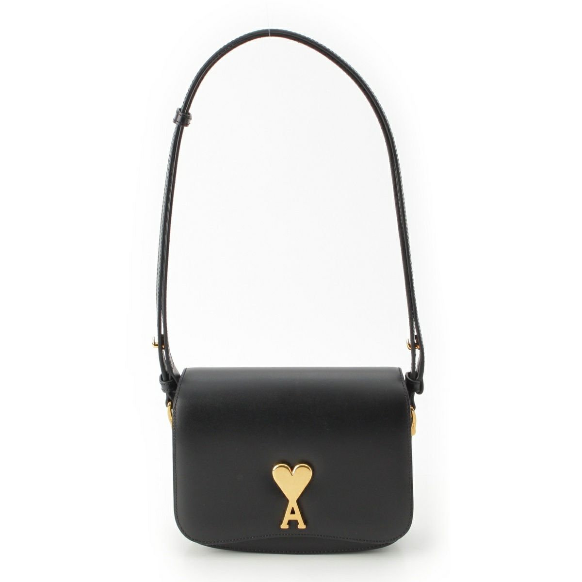 アミパリス グレインレザー アミアレクサンドル マテュッシ ロゴプレート ショルダーバッグ ブラック