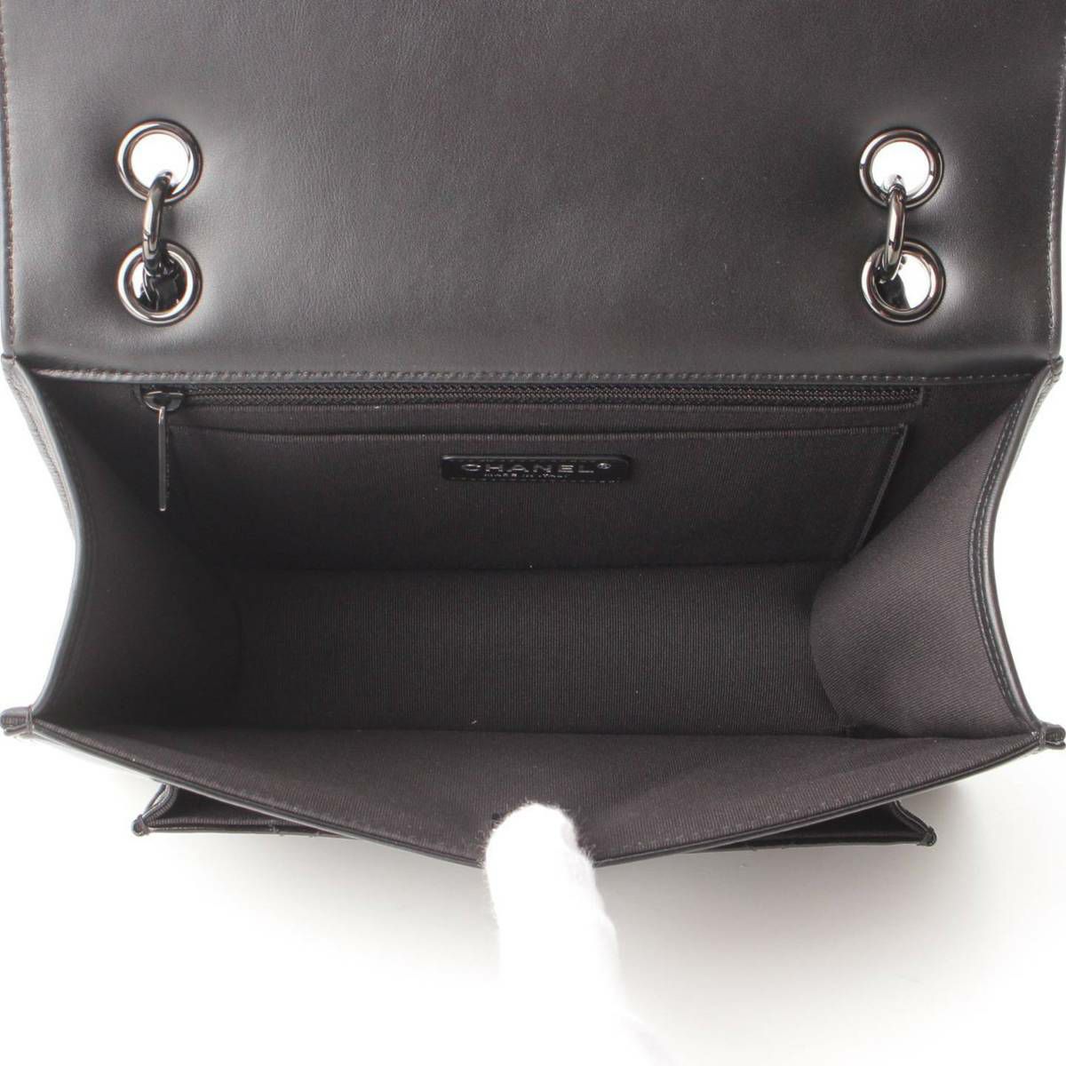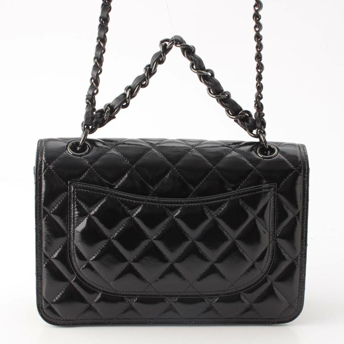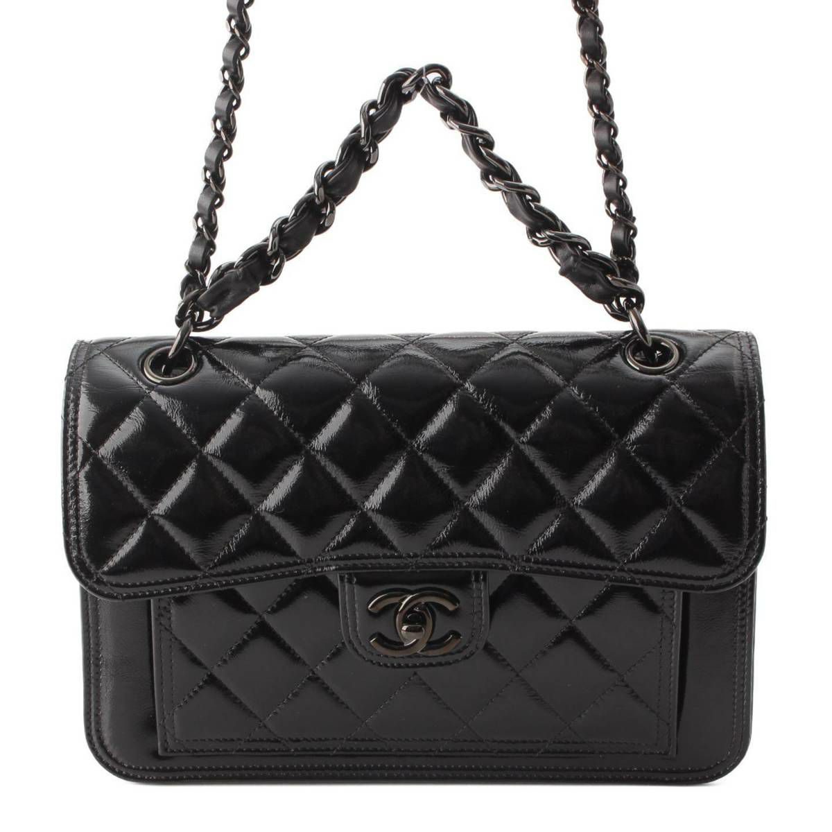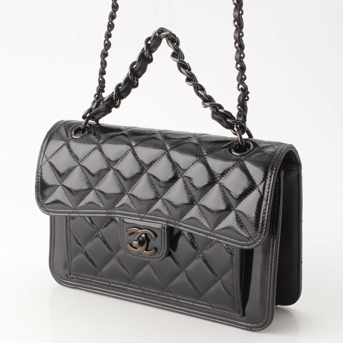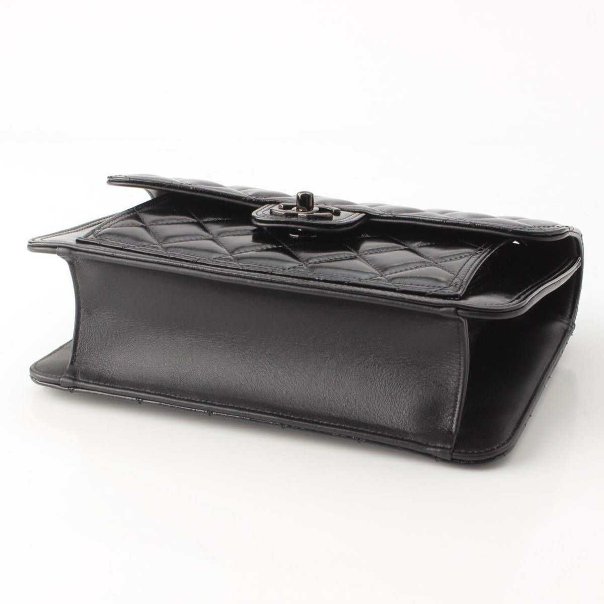 シャネル 23K シャイニーカーフ マトラッセ クランプル Wチェーン ショルダーバッグ ブラック