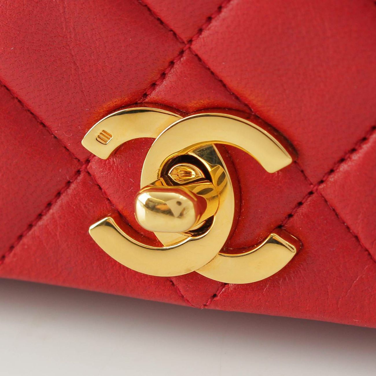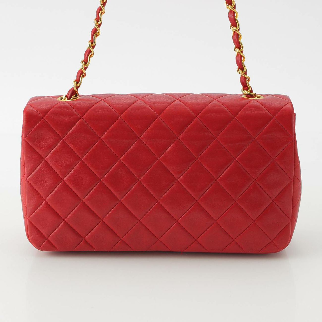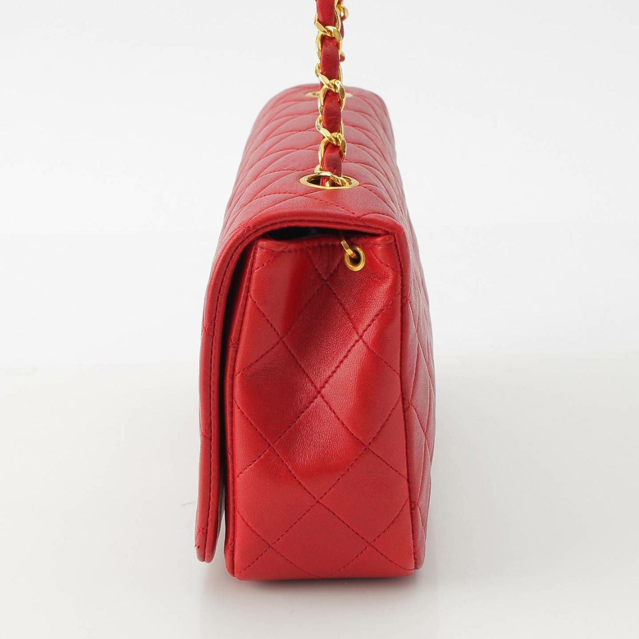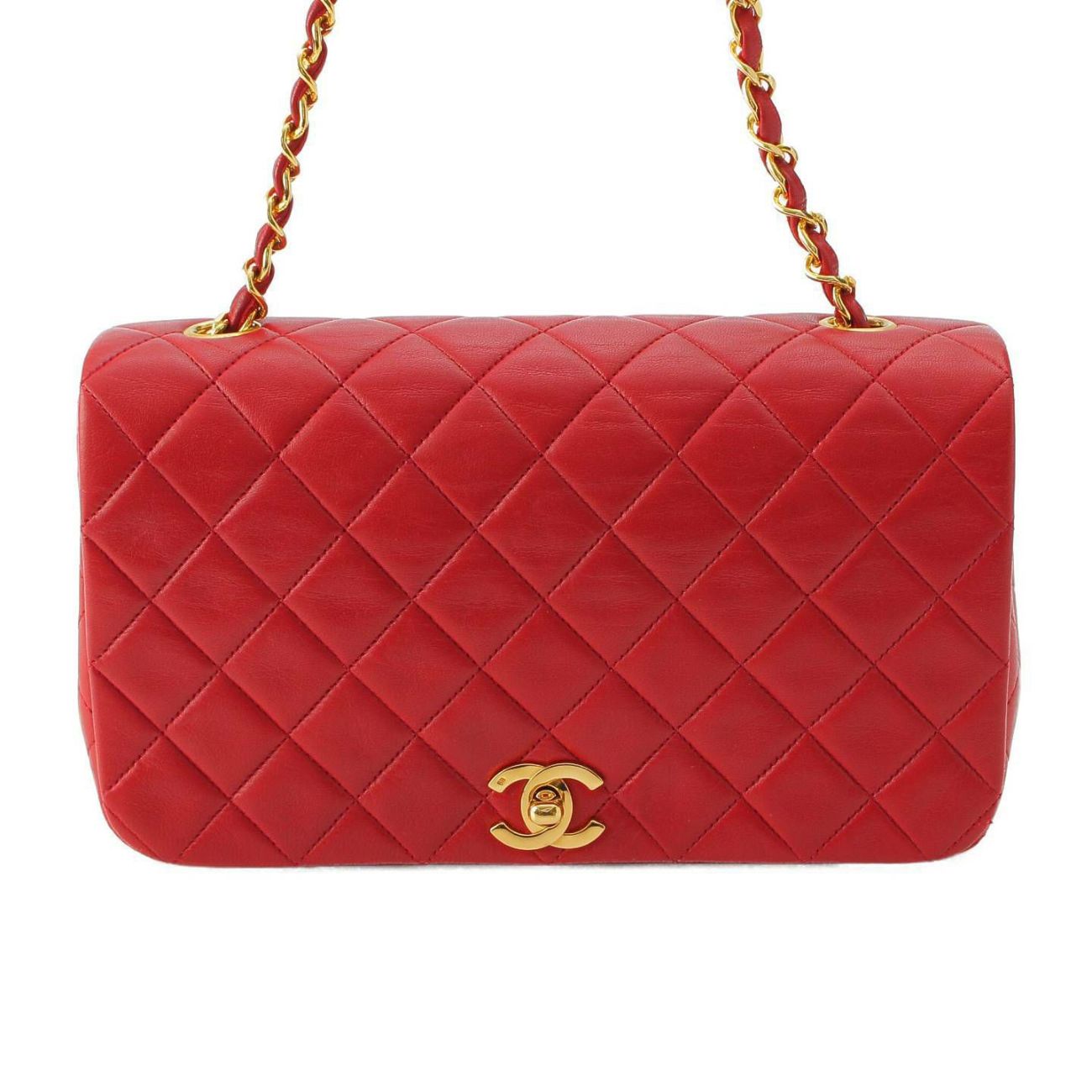 シャネル 1番台 マトラッセ ラムスキン チェーンショルダーバッグ ゴールド金具 レッド