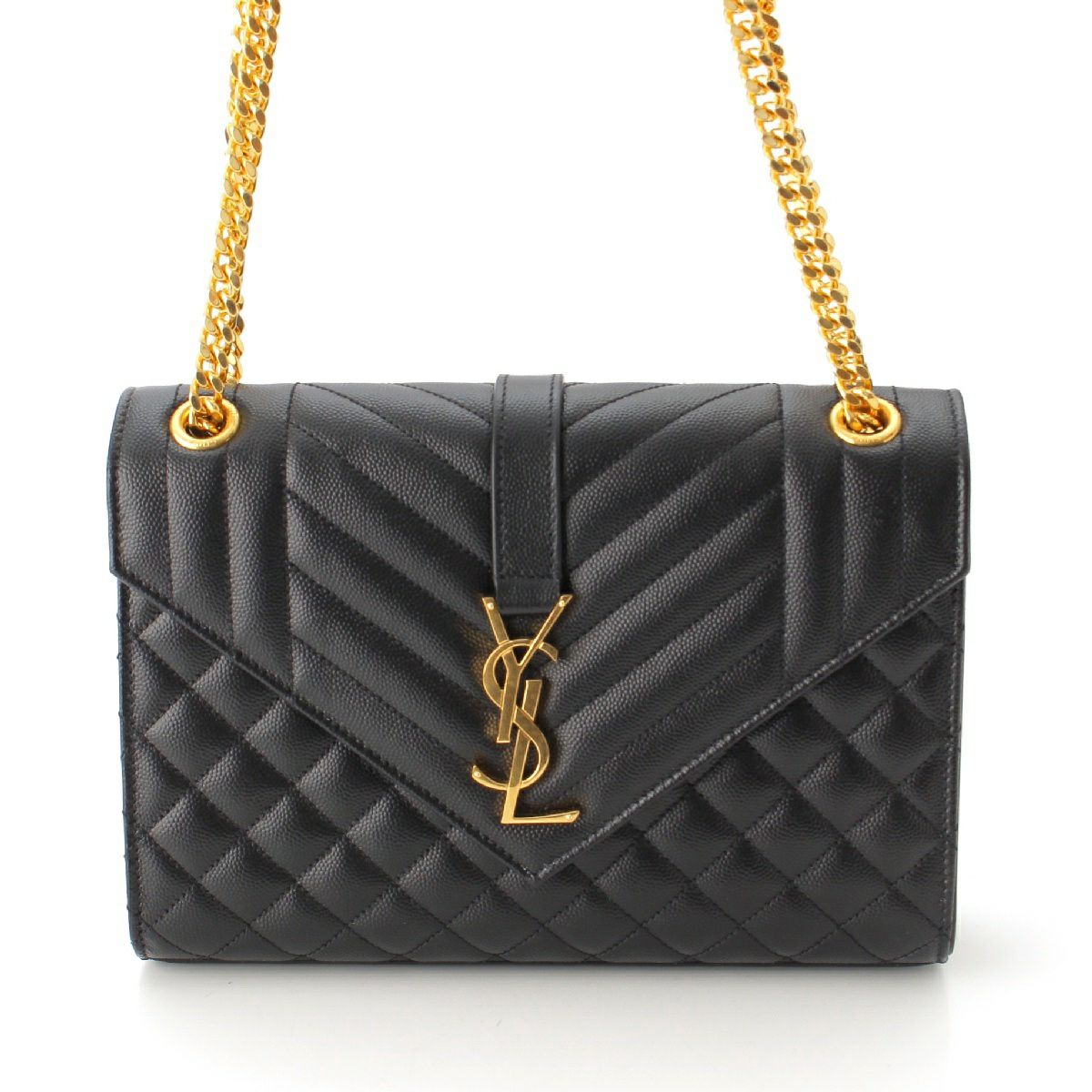 サンローラン エンベロープ レザー ショルダーバッグ チェーン 487206 ブラック