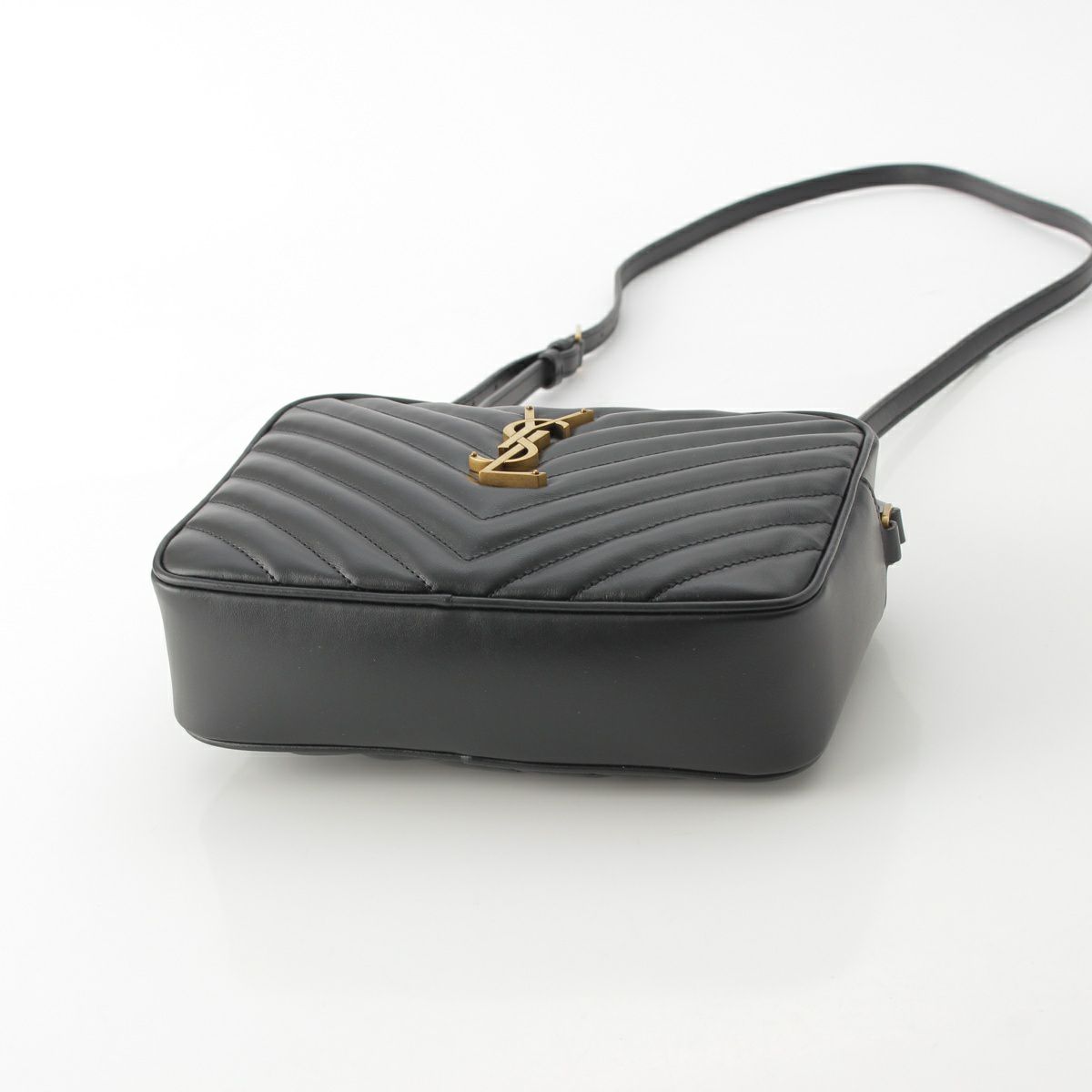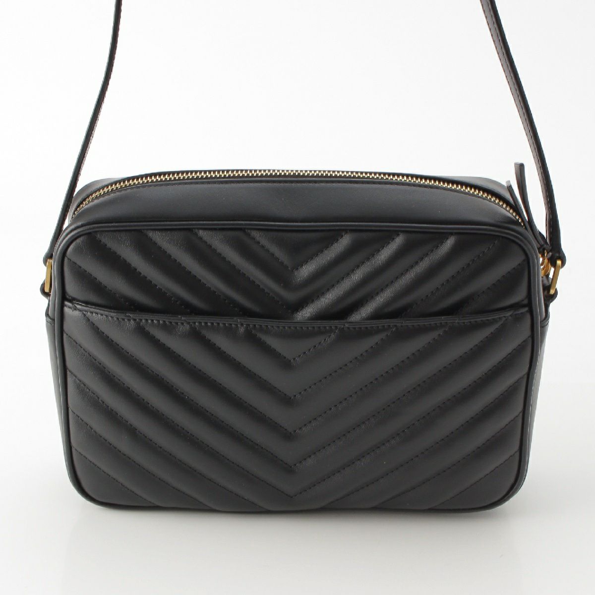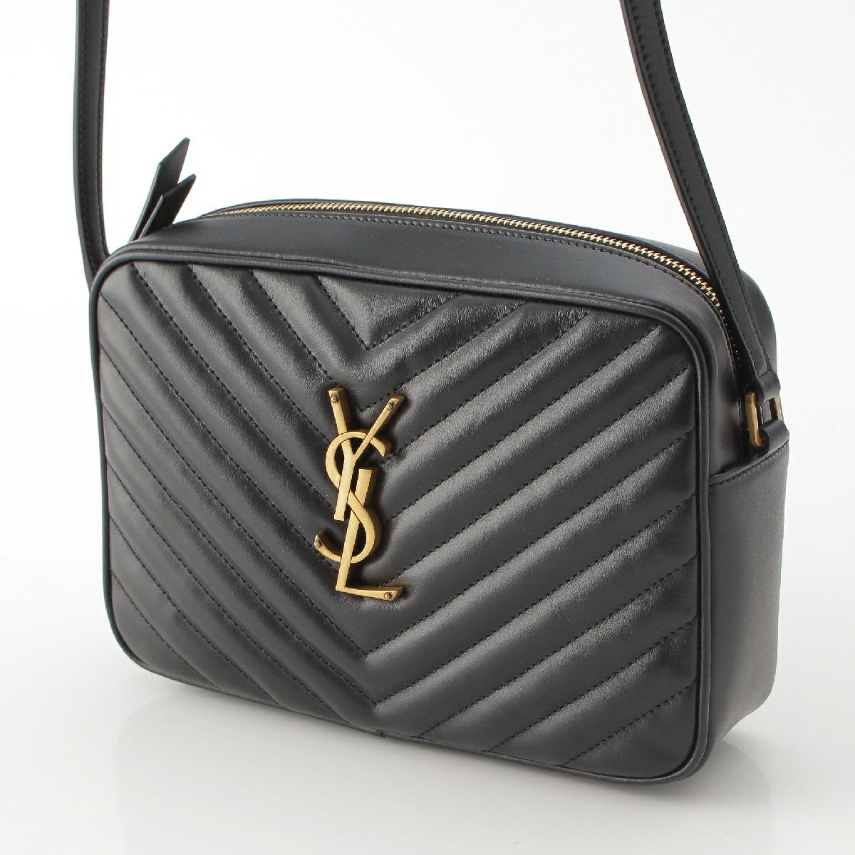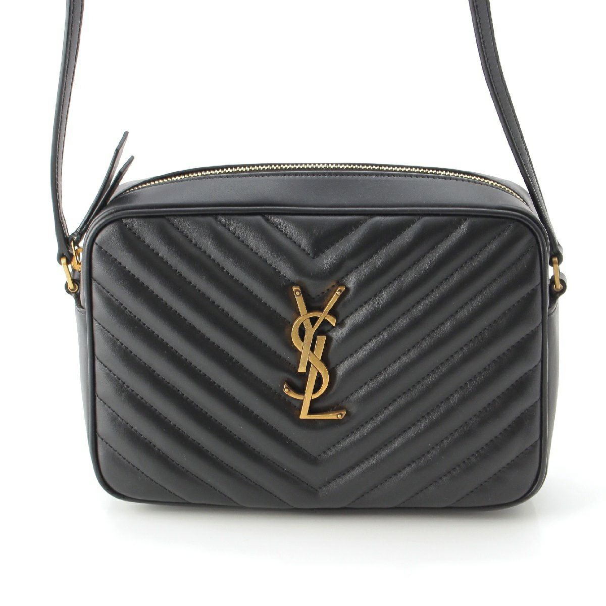サンローラン モノグラムサンローラン レザー YSLロゴ Vステッチ カメラ ショルダーバッグ ポシェット 761554 ブラック